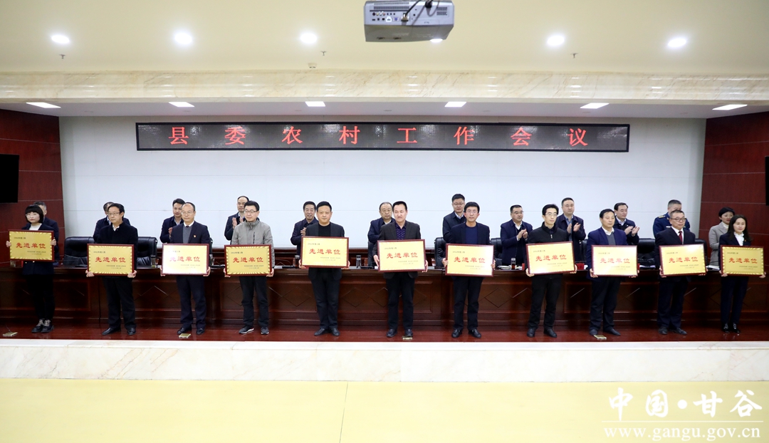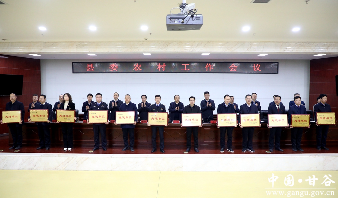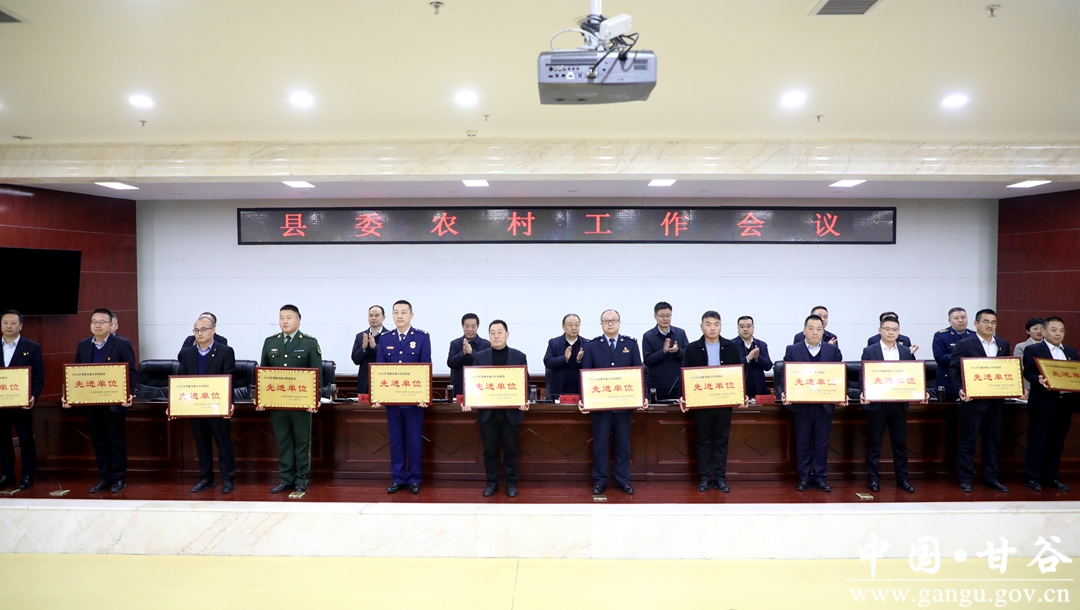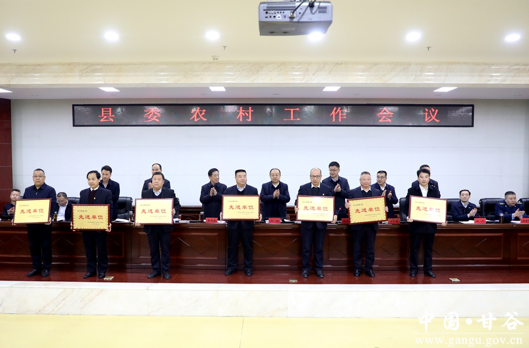 会议传达学习了中央农村工作会议精神、胡昌升同志对全省农业农村工作的批示精神和省委农村工作会议、全省农业农村局长会议、乡村振兴局长会议、市委农村工作会议精神;审议了《关于做好 2023 年全面推进乡村振兴重点工作的实施意见(讨论稿)》;表彰了2022年度综合考核先进乡镇、先进单位和服务地方经济建设先进单位;签订了粮食安全生产和村集体经济收入目标责任书。县农业农村局、乡村振兴局、粮食局围绕春耕生产、2023年巩固拓展脱贫攻坚成果重点工作、粮食安全责任落实进行大会发言。