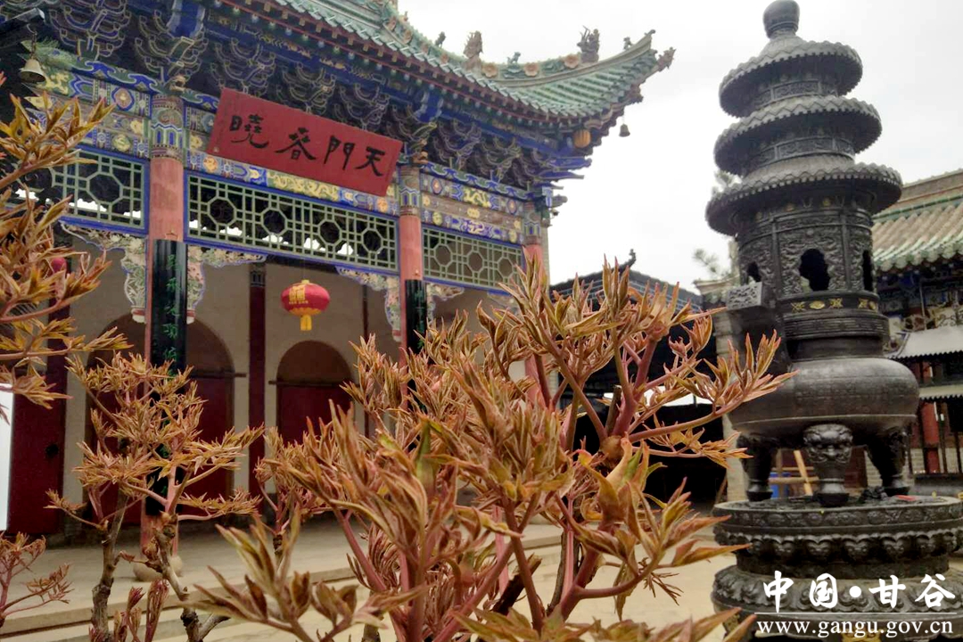 天门山巅有东岳庙,又称天齐宫,俗称泰山庙,始建于宋仁宗天圣年间,至今整整千年。作为甘谷主山,天门山在甘谷人心中有着极其崇高的地位,甘谷素有宗教信仰的传统,以佛教为主的大像山和以道教为主的天门山是甘谷人心中的灵山和圣山。这两座并驾齐驱的名山像双子星座,神圣在甘谷人心灵的天门,她们是甘谷人的精神寄托和灵魂指向,她们耸立在甘谷大地上,更耸立在甘谷人的心中。天门山西面是大像山,东面是来星塔,俗称南塔,距此不远,则是甘谷八景之一的“凌霄魁阁”。甘谷人崇文,不是口头上的崇,而是付诸行动实实在在地做。他们敬仰庇佑文化的神灵,更相信“从来就没有什么救世主,也不靠神仙皇帝,要创造人类的幸福,全靠我们自己。”外地人说甘谷教育发达的原因是把最好的学校建在了笔架山下,虽有偏颇,细思不无道理。甘谷人晨起推窗,第一眼看到的是天门山,是笔架山,是文化的形象和意象,清风入怀,儒风浩荡,这,不就是时时刻刻的鼓舞和激励?