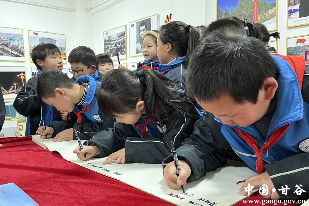 仪式结束后,全体少先队员在少先队校外辅导员的带领下,走进基地参观学习,大家一边怀着无比崇敬的心情参观了馆内展出的历史实物、珍贵图片和文献资料,一边认真聆听校外辅导员讲述红色文物背后可歌可泣的革命故事。一幅幅弥足珍贵的照片、一段段简洁凝练的叙述文字,多角度、全景式展示甘谷县各个时期的重要事件和各行各业、各条战线发生的巨大变化。少先队员们纷纷表示,要从小学先锋、长大做先锋,立志向、修品行、练本领,为聚力建设幸福美好新甘谷时刻准备着。