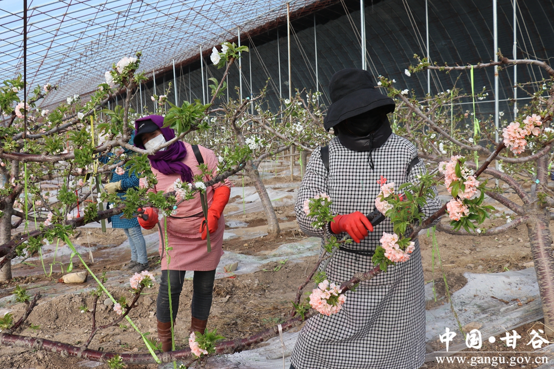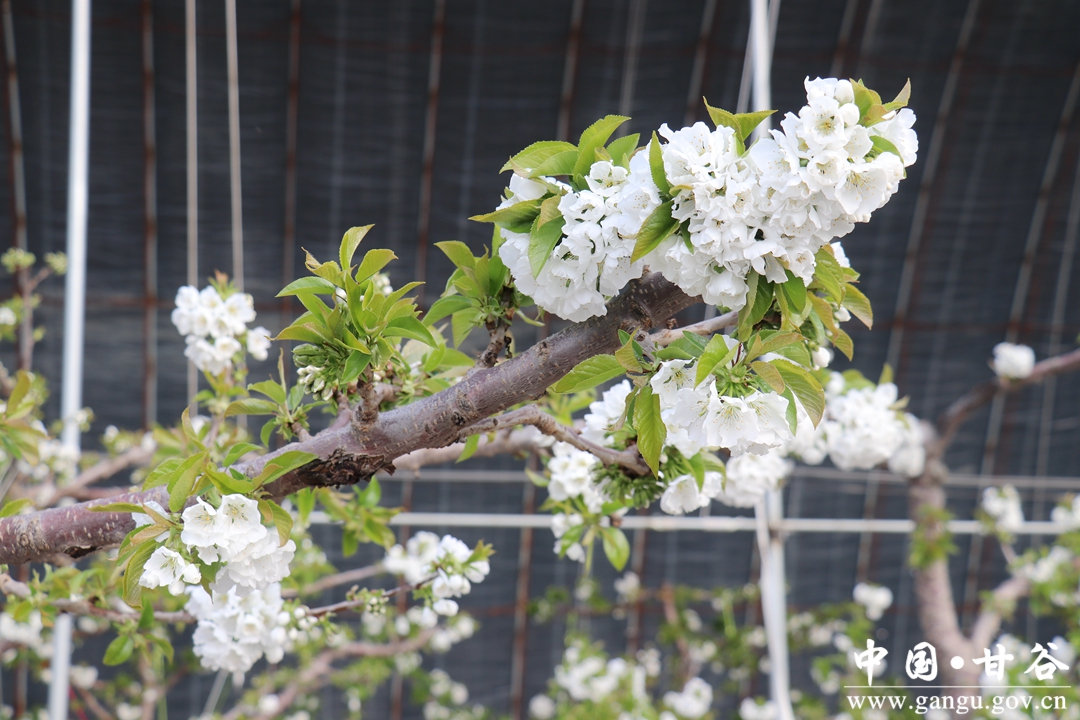 这两天,走进甘谷县安远镇巩川村的塑料大棚,只见繁茂的樱桃花竞相绽放,一簇簇洁白的花朵挂满枝头,团团若絮,袅袅如烟,如一条条白色的玉带萦绕开来……大棚内,果农们正忙着给樱桃树疏花浇水,以保证樱桃果实正常生长发育、丰产丰收。