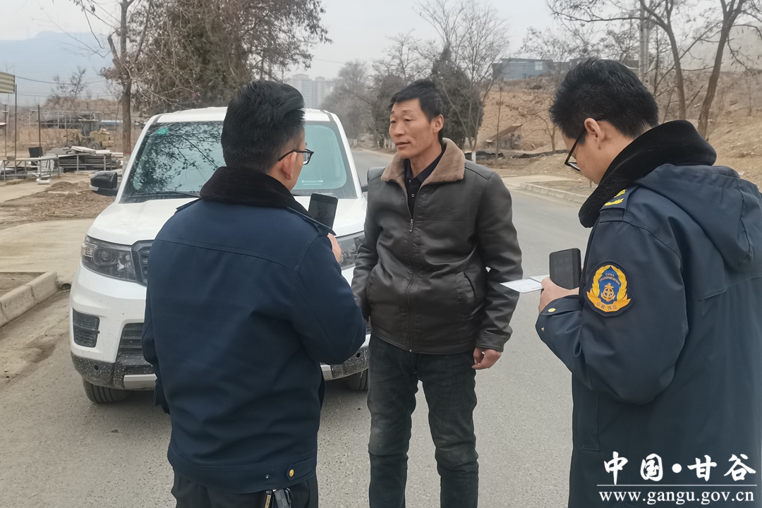 二是执法大队上路进行常态化的宣传和劝导,耐心劝导车主做好安全防护。