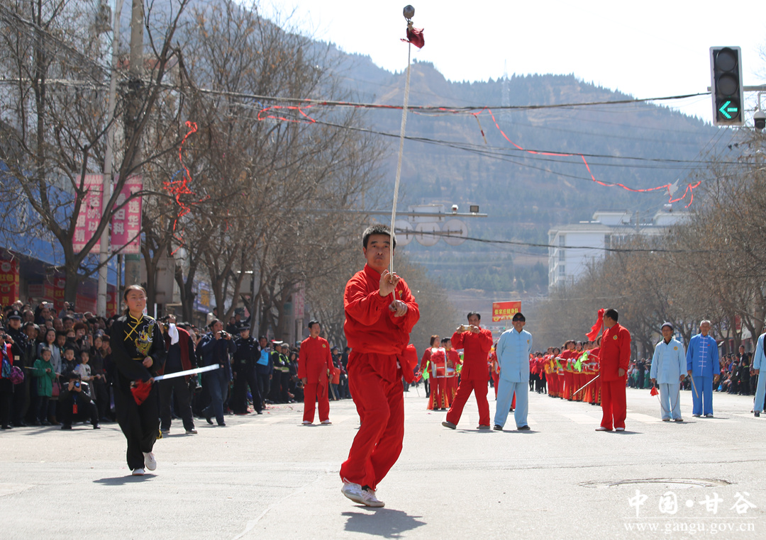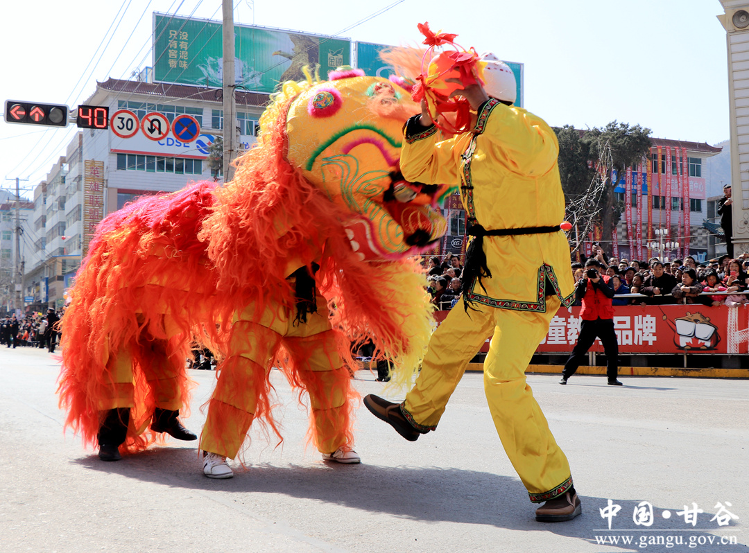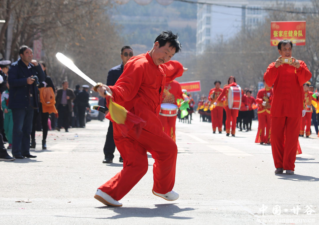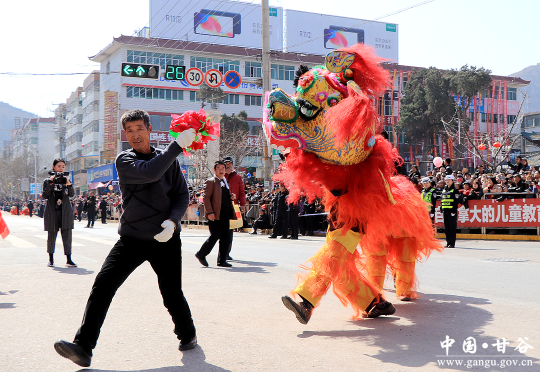 伴随着欢快的锣鼓声,太平锣鼓队率先登场,拉开了社火展演的序幕,一个个精彩的节目依次展现在观众面前。鼓声阵阵、气势雄壮,舞龙舞狮,威风凛凛;腰鼓和高台表演,在喜庆的气氛中演出了博大精深、源远流长的民俗文化,舞出了和谐家园的美丽画卷;精彩的武术表演,动静有致、刚柔并济,展现了甘谷姜维武术的无限魅力;磐安舞蹈队的表演,动作优美舒展、整齐划一,和着优美的旋律,翩翩起舞,崭新的风貌成为社火汇演的一道亮丽风景。精彩纷呈的节目吸引了众多群众前来观看,演员们精湛的表演把春天的生机、新年的吉祥带给了广大群众,博得了观众们的阵阵喝彩。