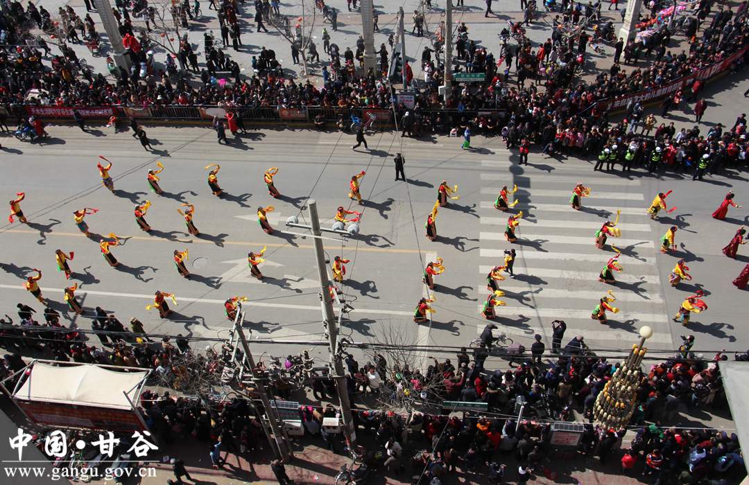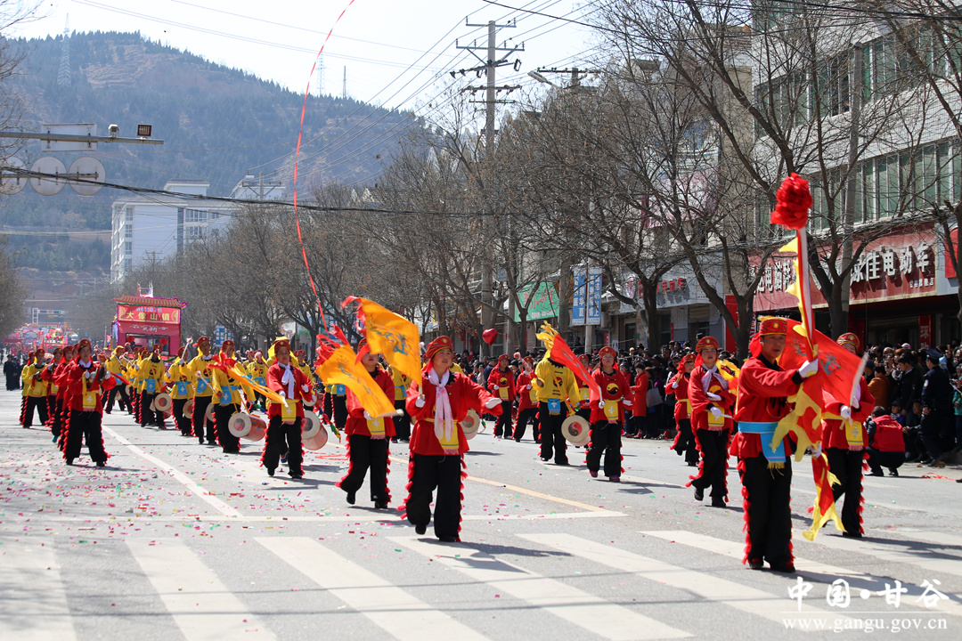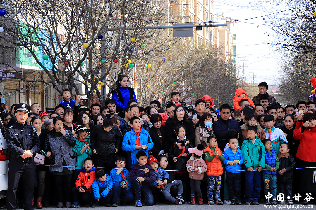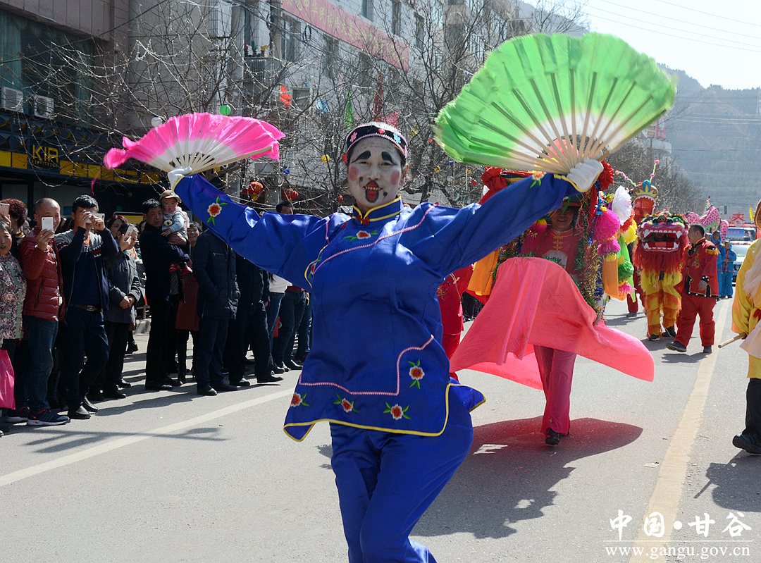 伴随着欢快的锣鼓声,太平锣鼓队率先登场,拉开了社火展演的序幕,一个个精彩的节目依次展现在观众面前。鼓声阵阵、气势雄壮,舞龙舞狮,威风凛凛;腰鼓和高台表演,在喜庆的气氛中演出了博大精深、源远流长的民俗文化,舞出了和谐家园的美丽画卷;精彩的武术表演,动静有致、刚柔并济,展现了甘谷姜维武术的无限魅力;磐安舞蹈队的表演,动作优美舒展、整齐划一,和着优美的旋律,翩翩起舞,崭新的风貌成为社火汇演的一道亮丽风景。精彩纷呈的节目吸引了众多群众前来观看,演员们精湛的表演把春天的生机、新年的吉祥带给了广大群众,博得了观众们的阵阵喝彩。