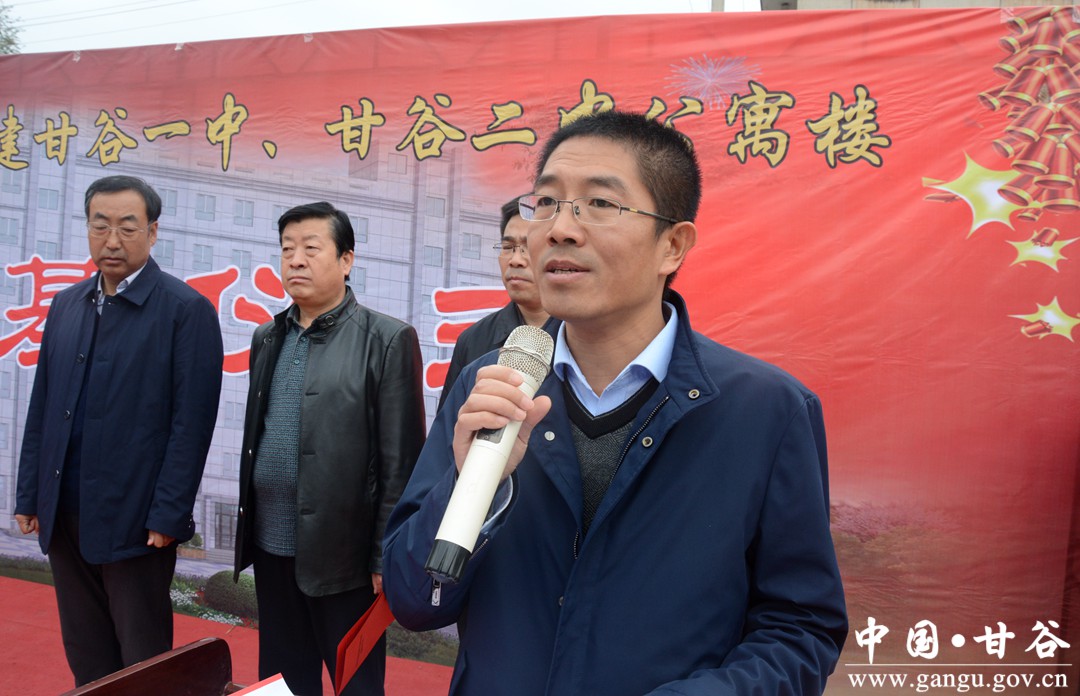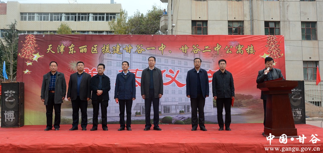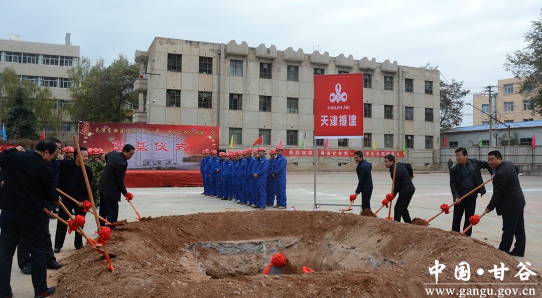 11月10日,天津东丽区帮扶援建甘谷一中、二中学生公寓楼项目开工仪式甘谷一中举行。县委常委、宣传部长张庆元,副县长牛武军,朱德勇及县教体局、甘谷一中、二中负责人出席活动。