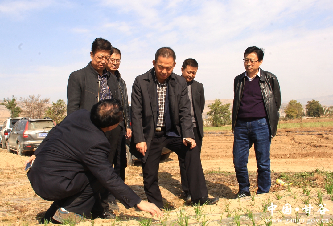 11月2日,省农技总站站长赵贵宾,省环保站副站长李崇霄带领督查组深入甘谷县,督查指导秋覆膜等重点工作。市农业局副局长史延春,市农技中心主任张永明,市土肥站副站长关佑君,副县长杨宏一同督查。