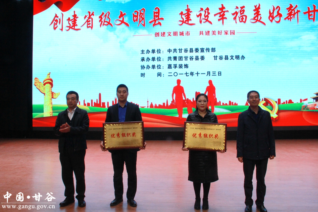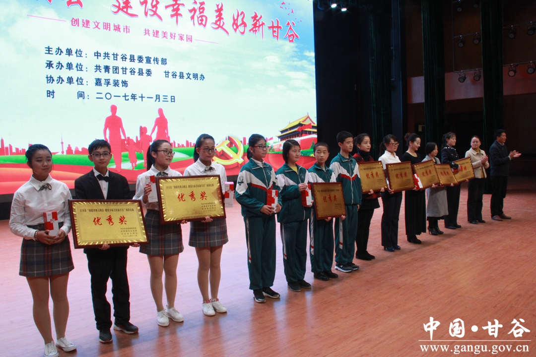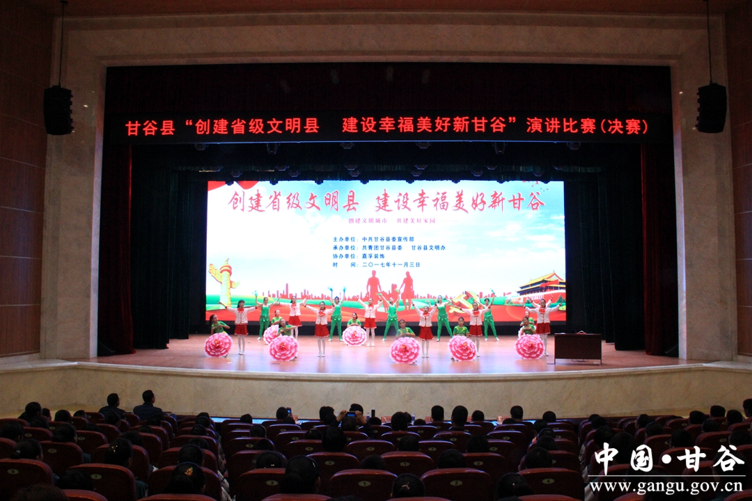 “讲文明话,办文明事,做文明人,创文明县,让我们的城市更美丽……”11月3日,由县委宣传部主办,县文明办、团县委承办的“创建省级文明县 建设幸福美好新甘谷”演讲比赛(决赛)在甘谷影剧院举行,县委副书记任佩光,副县长牛武军及部分干部群众观看比赛。