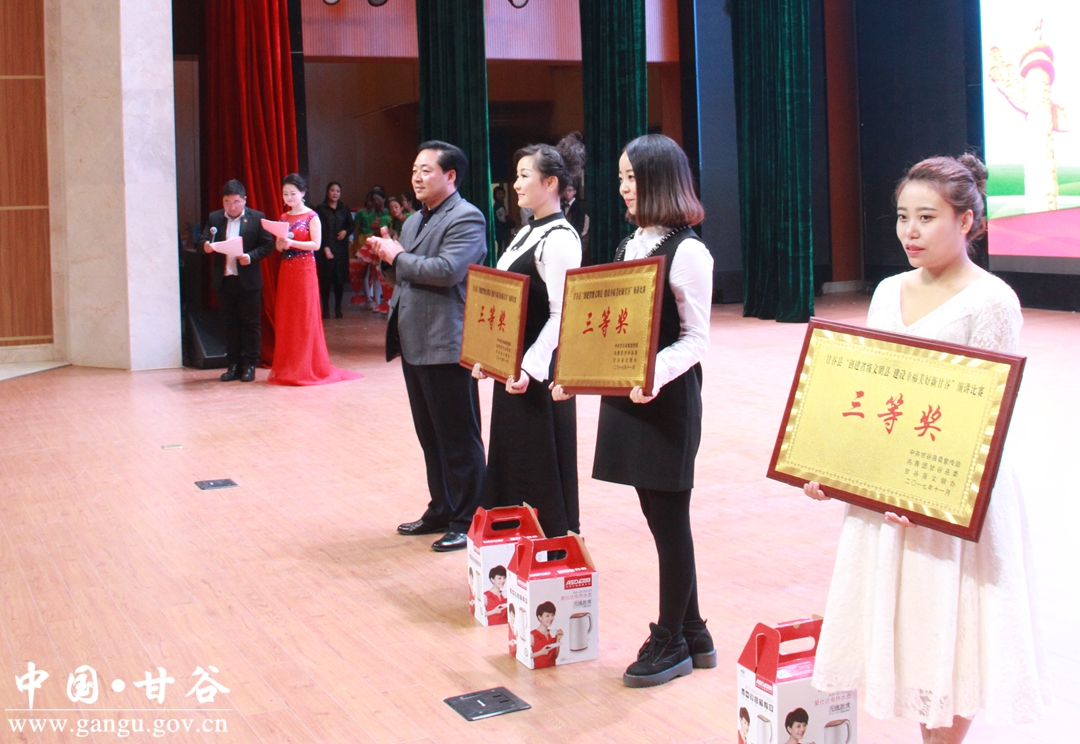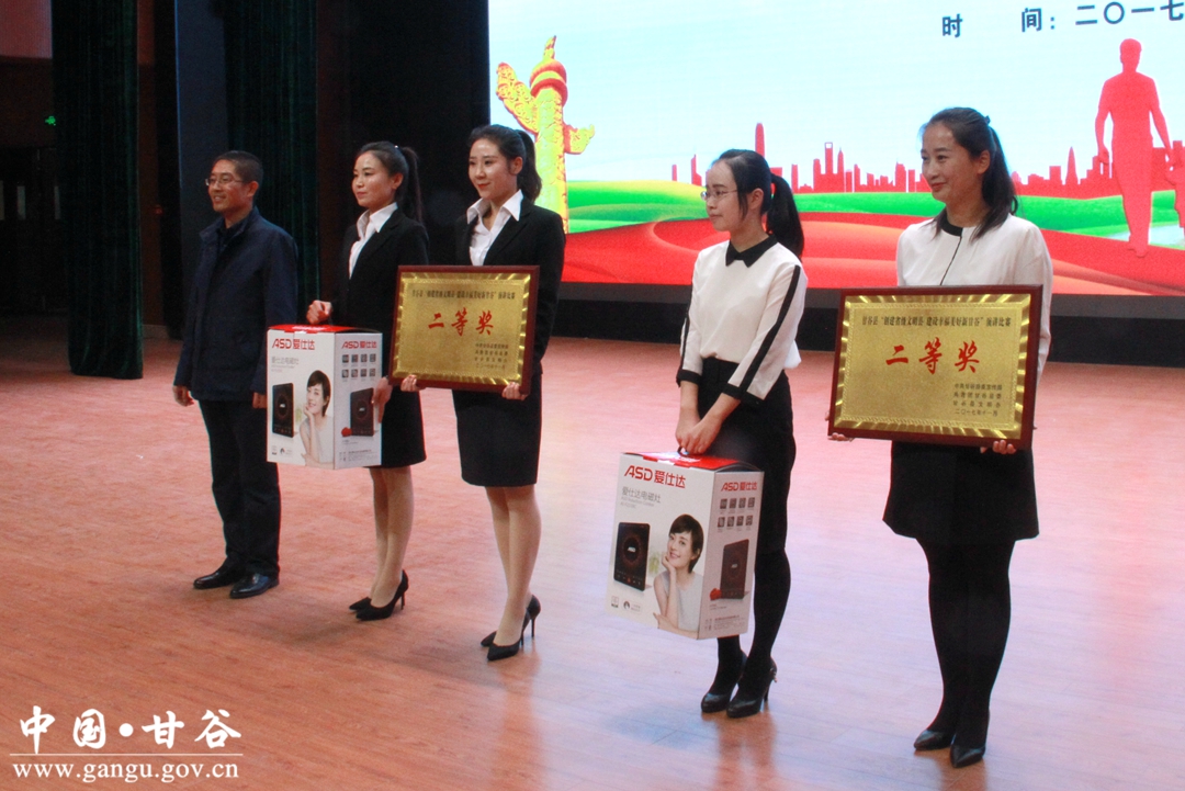比赛中, 来自县直单位和乡镇的14支代表队以“创建省级文明县 建设幸福美好新甘谷”为主题,结合本职工作特点,以城市品质提升、创建文明城市中的亲自经历、亲身体验、亲眼所见、亲耳所闻的感人事迹,用真挚的情感、朴实的语言表达了广大市民对创建文明县的理解和感悟,阐释了参与创建文明县和建设美好家园的决心和信心,以饱满的热情讴歌了在积极参与创建全国文明县过程中涌现出来的先进个人和动人事迹,展现了甘谷人自信、奉献、创新、包容的风采。