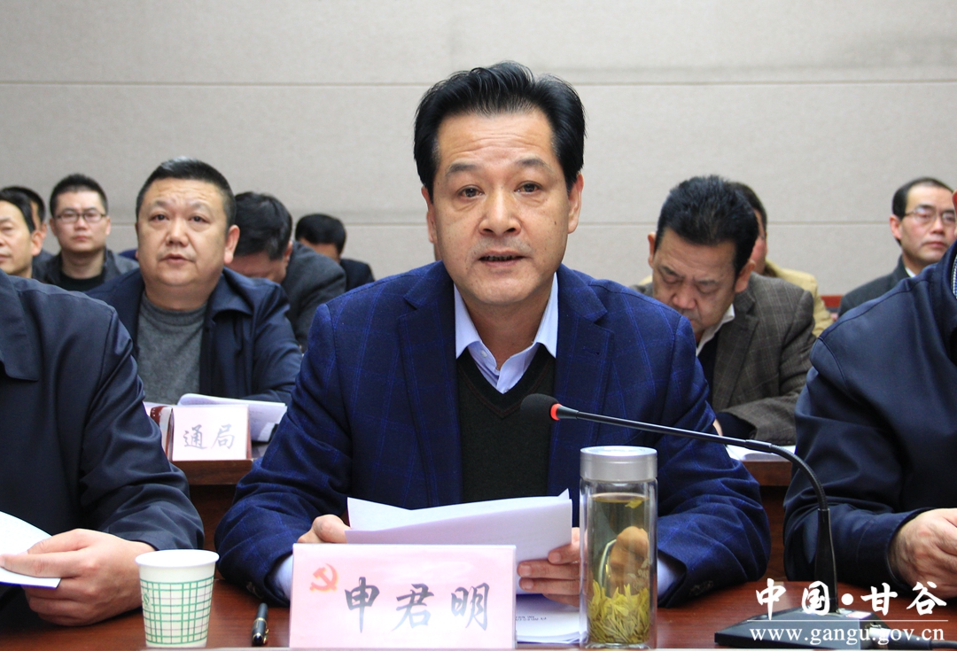 申君明对课题组一行来甘谷县专题调研、编制县域经济发展规划表示感谢,并向课题组介绍了我县当前发展面临的优势和短板,发展理念、思路和举措。申君明说,高起点制定县域经济发展中长期规划,是贯彻落实党的十九大精神、解决发展不平衡不充分问题的重要举措,事关大局、事关发展、事关民生。希望课题组为甘谷县域经济发展会诊把脉,在规划编制过程中,能够贯彻党的十九大精神,遵循“四个全面”战略布局和“五位一体”总体布局,践行创新、协调、绿色、开放、共享的发展理念,用足用活国家产业政策,按照省委有关县域经济发展的部署要求,立足实际,着眼长远,突出产业布局特色,立足产业发展优势,把破解瓶颈和解决突出问题作为重要着力点,高起点提出未来15—20年县域经济发展的思路、定位、方向,为甘谷县编制出一个既注重科学性又注重操作性,既体现前瞻性又体现实践性的高水准的县域经济发展规划。县发改局要充分发挥牵头抓总作用,积极沟通,紧密衔接,及时解决规划编制过程中遇到的困难和问题,全力以赴做好协调服务。各相关部门要高度重视,加强协调,积极配合,参与谋划,及时准确提供相关资料,全力保障规划编制工作顺利开展。