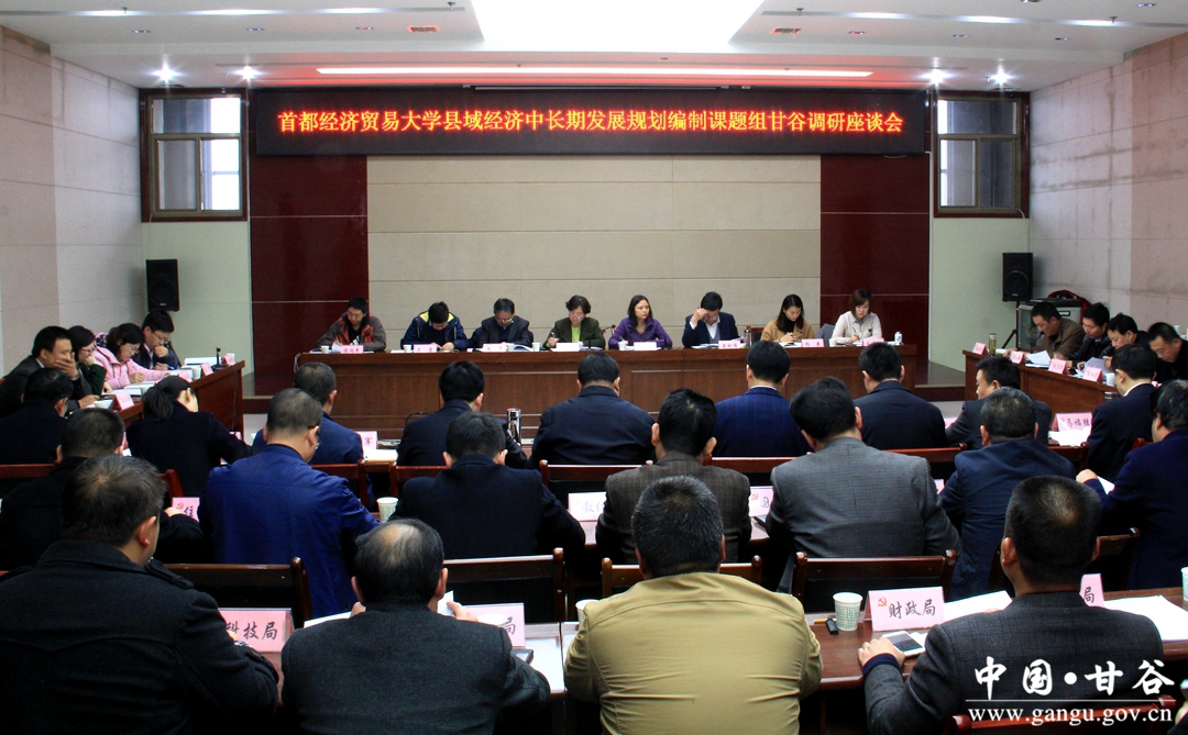 10月29至31日,首都经济贸易大学副校长、中国区域科学协会会长、教授杨开忠,首都经济贸易大学城市经济与公共管理学院副院长、教授彭文英,首都经济贸易大学教授安树伟、祝尔娟带领课题规划组深入甘谷县实地调研县域经济发展基本情况。