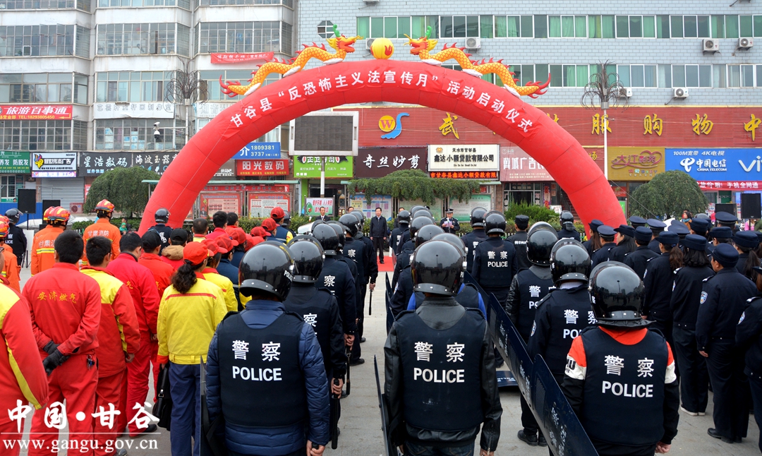 冯全敬主持启动仪式。活动中,孟晓龙作了讲话;县公安局负责人宣读了《甘谷县反恐怖工作领导小组关于开展“反恐怖主义宣传月”活动实施方案》;县公安局反恐防暴特警大队及大像山镇相关负责人作了表态发言。