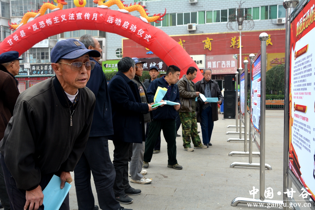 11月1日,甘谷县《反恐怖主义法》宣传月活动启动仪式在大什子广场举行,动员全县广大干部群众,坚决打赢反恐怖人民战争,切实维护全县政治安全和社会稳定。