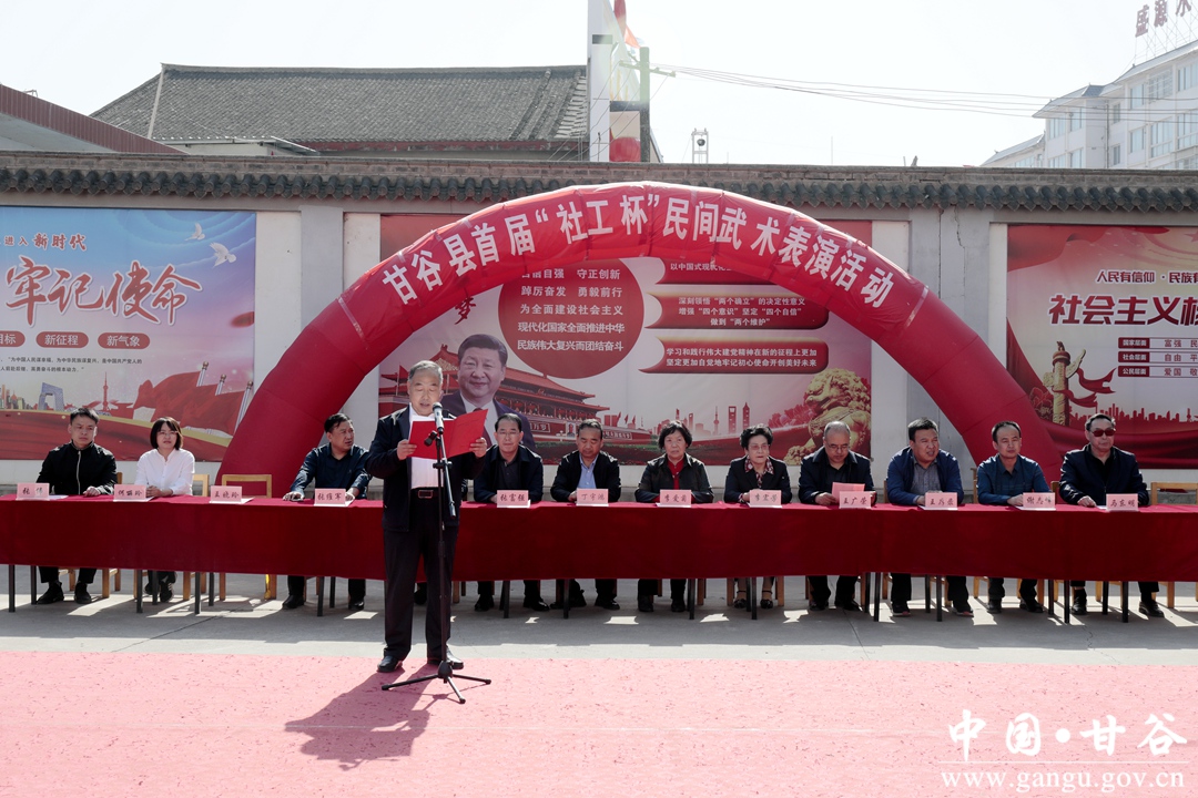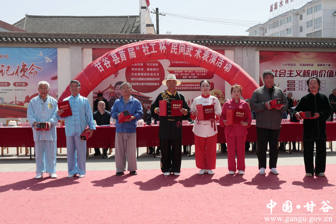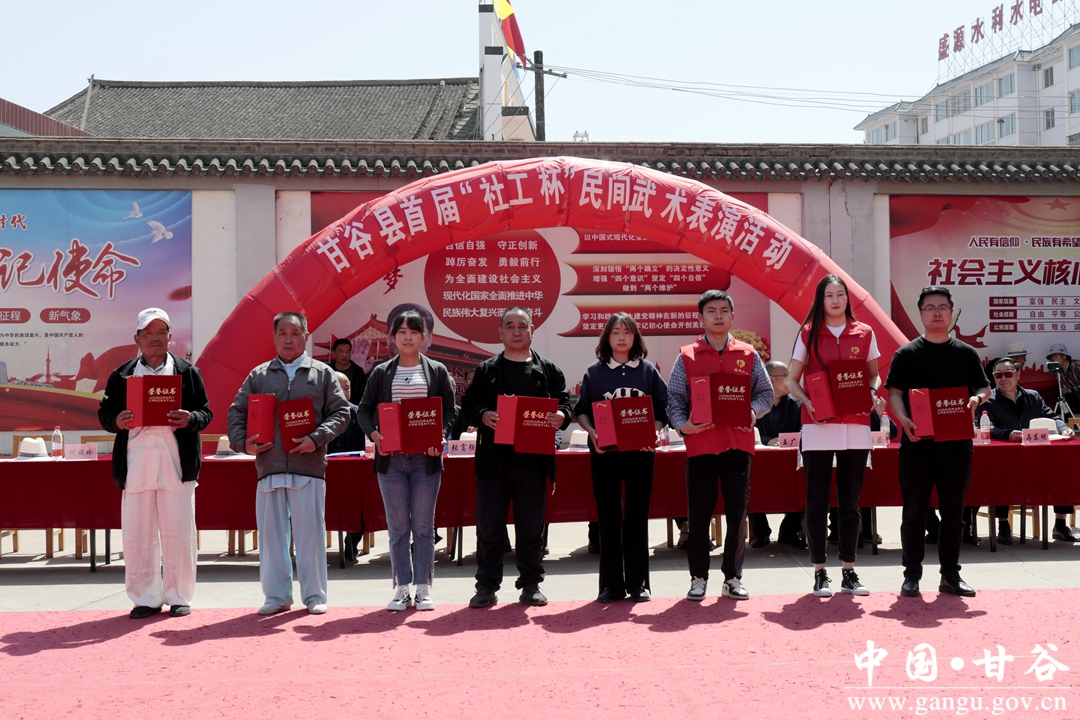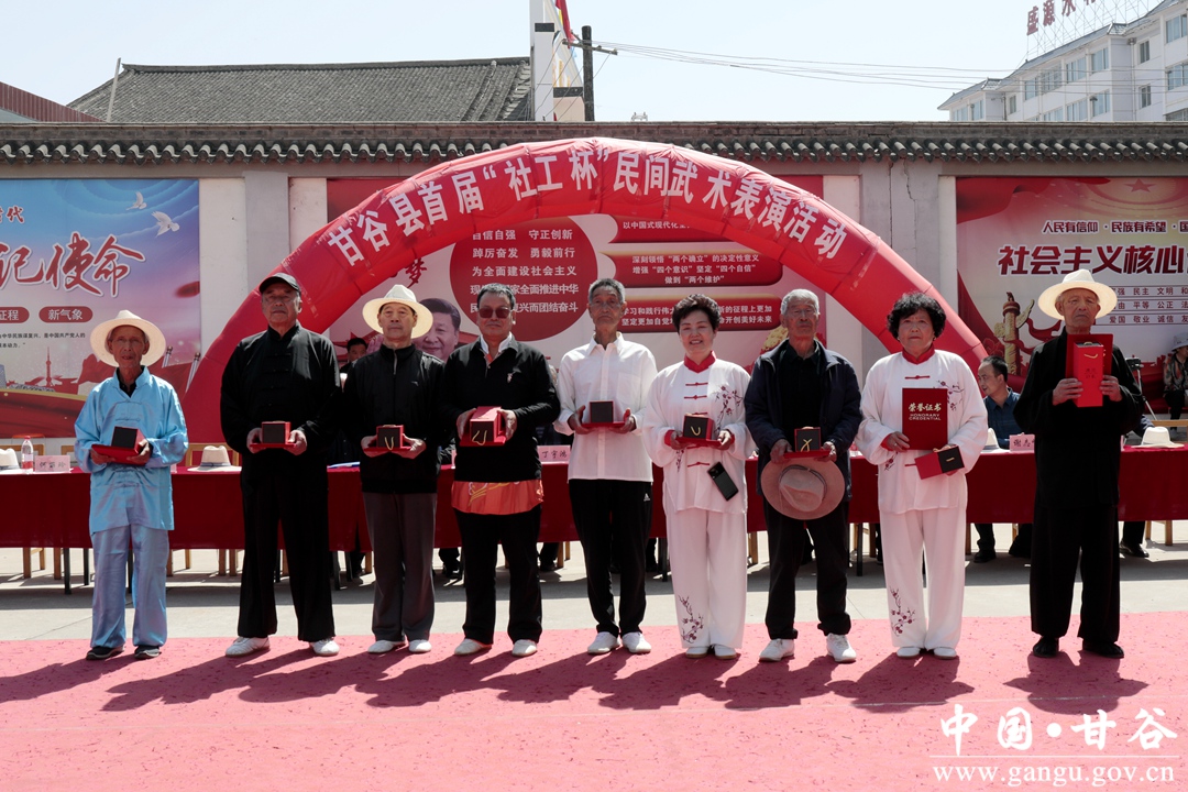 为了认真贯彻习近平总书记关于体育强国建设系列讲话精神,促进全民健身运动,对民间武术拳种进行抢救性挖掘和整理保存,鼓励民间武术爱好者传承中华传统武术优秀拳种,培养武术人才,提升甘谷武术之乡知名度,推动全县武术事业发展。5月14日,甘谷县举行首届“社工杯”民间武术表演活动,活动由县民政局、县体育发展中心主办,县武术协会承办,县关工委、县老年大学协办,社会各界武术爱好者、老年大学部分学员、部分乡镇社工站人员、县民政事务服务中心全体人员参加活动。