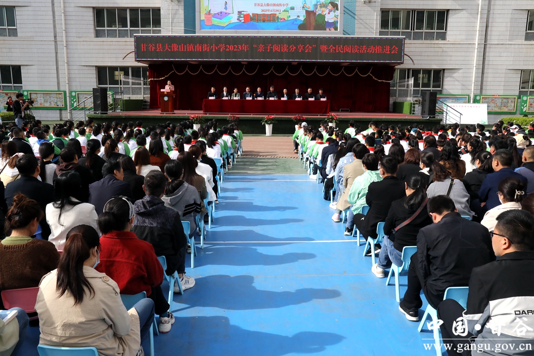 为积极响应2023年全国教育工作会议提出的“要把开展读书活动作为一件大事来抓,引导学生爱读书、读好书、善读书”,进一步提高家长对孩子阅读的重视,促进亲子阅读常态化,全面推动学校阅读活动的深入开展,为全体师生及家长营造内涵丰富、特色鲜明的读书氛围,4月29日,甘谷县大像山镇南街小学举行第二届亲子阅读交流分享活动暨全民阅读推进会。县教育局、大像山镇相关负责人,家长代表、南街小学师生代表共计1500余人参加此次活动。