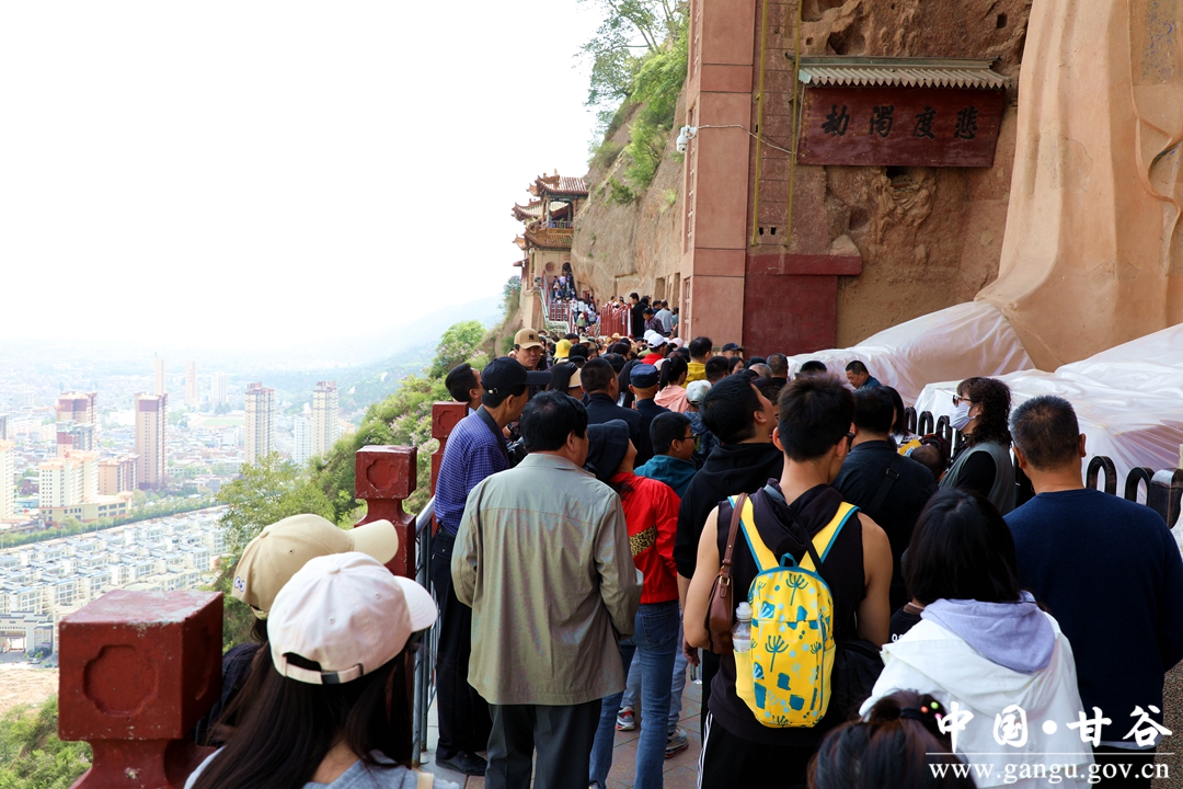 “甘谷塑佛造像可远溯北魏,先后共经历了四个朝代,三百多年......”,大像山景区服务中心讲解员张怡春在大佛造像脚下给游客讲述着大佛的悠久历史。“现场看大佛造像更加雄伟壮观,听了造像艺术和历史讲解,真心感觉不虚此行。”古代工匠的鬼斧神工和大像山的悠久历史令不少游客叹为观止。