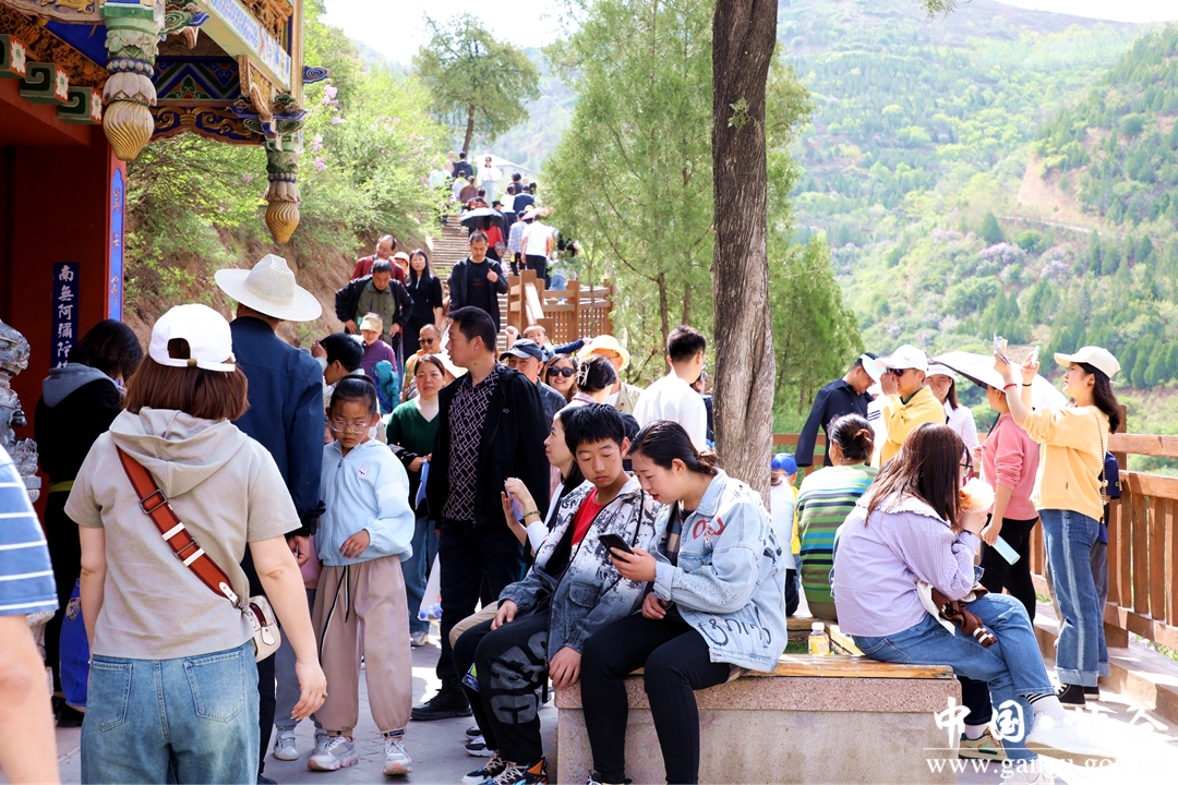 沿着山门一路向上,游客络绎不绝,到处人头攒动、熙熙攘攘,呈现出一派热闹的繁荣景象。游客们三五成群,或朋友相聚兴致勃勃,或一家人其乐融融、扶老携幼,流连在景区各景点之中,尽情享受假日出游的悠闲与乐趣。