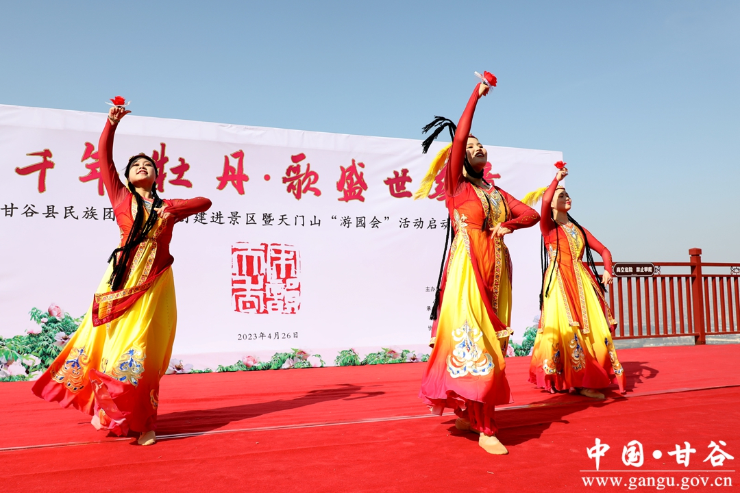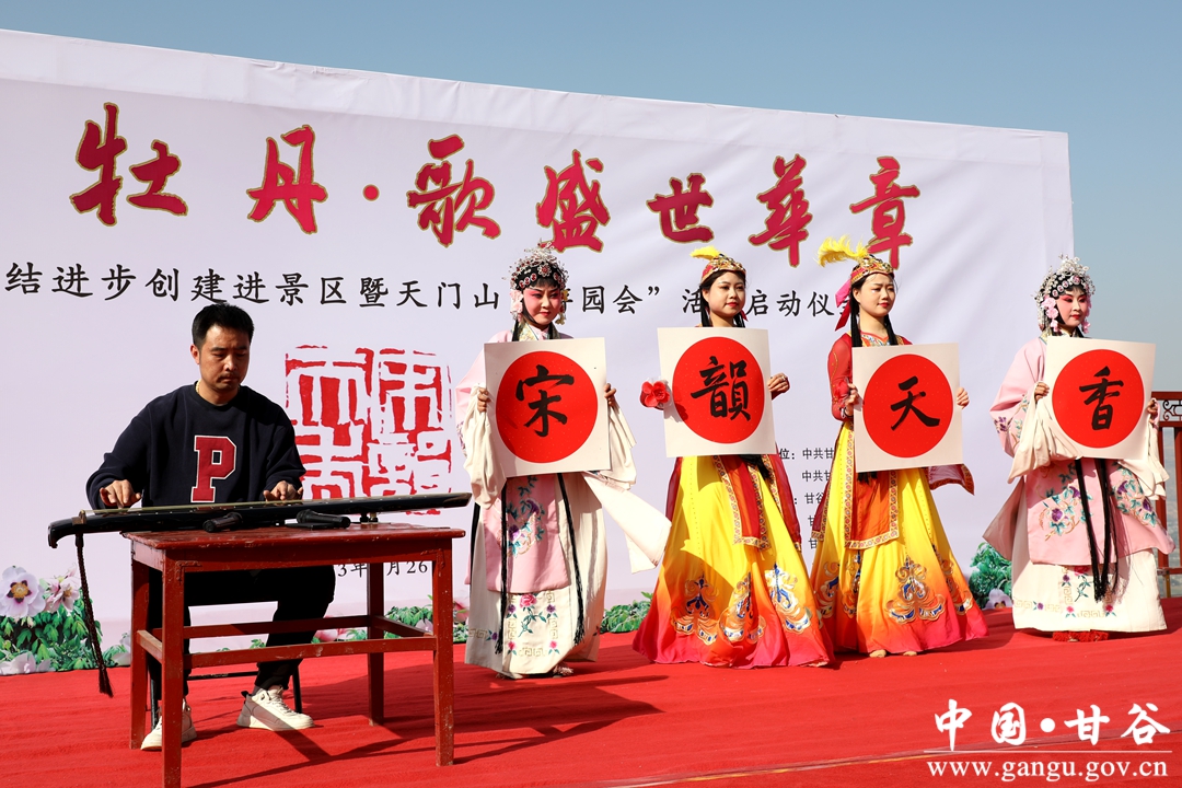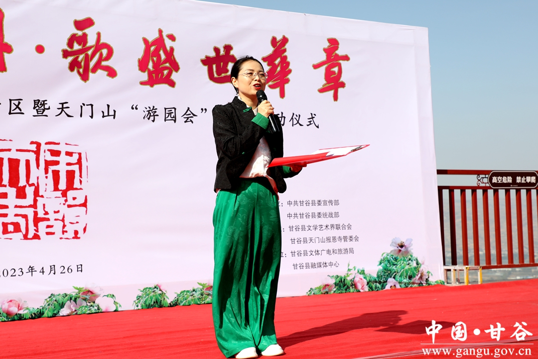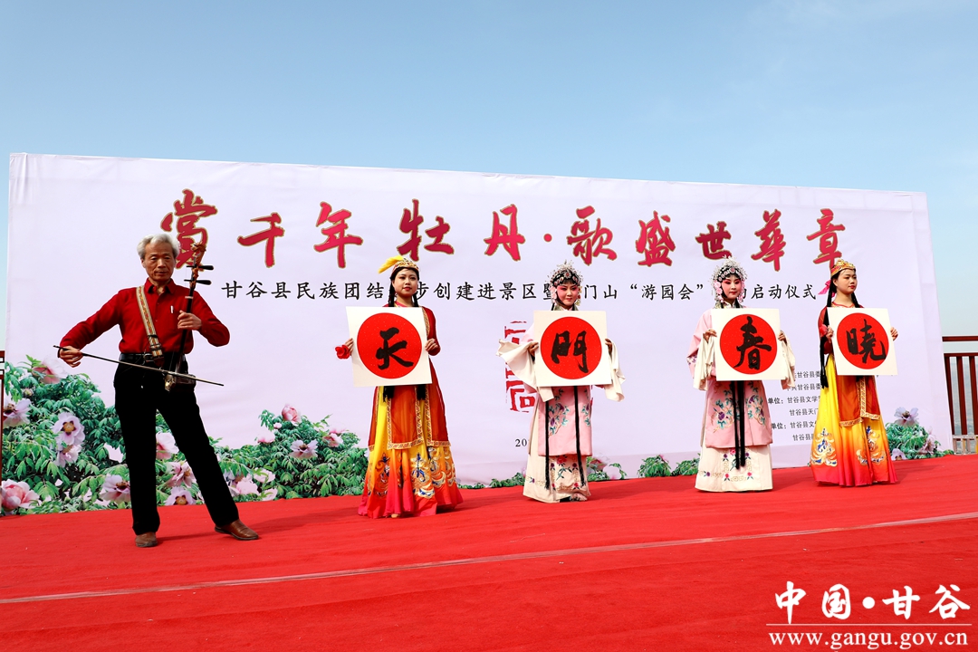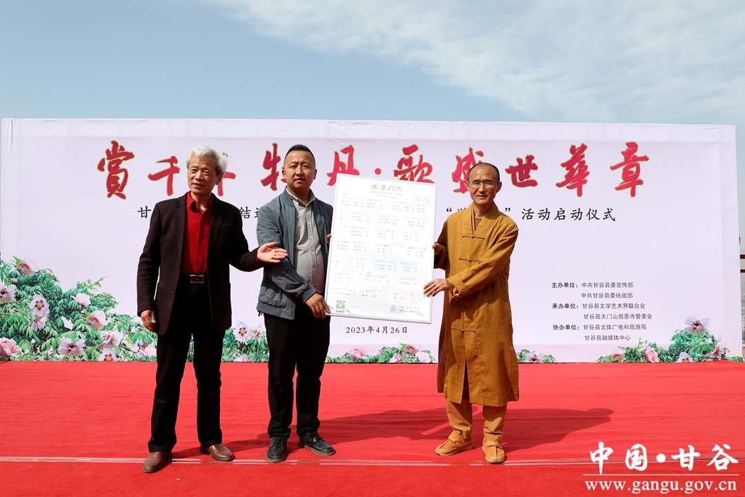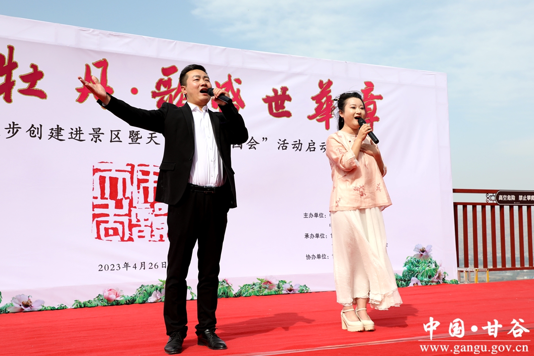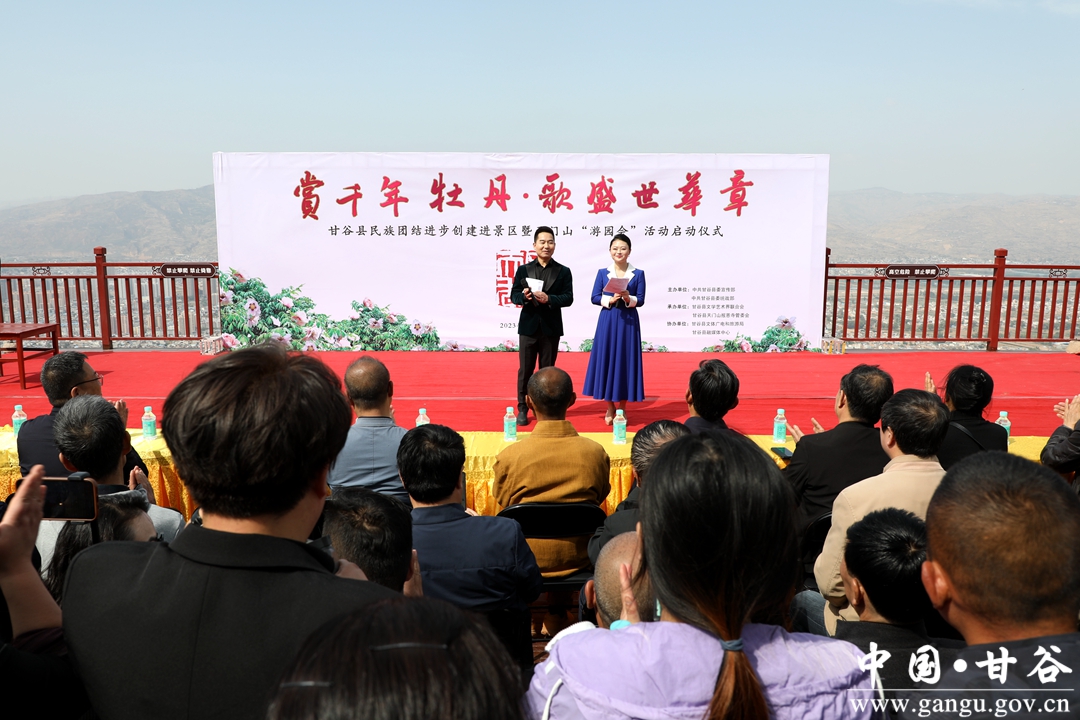 赏千年牡丹,歌盛世华章。4月26日,由县委宣传部、县委统战部、县文联、县文旅局、县融媒体中心联合承办的甘谷县民族团结进步创建进景区暨天门山“游园会”活动启动仪式在天门山观景台凌虚台举行。启动仪式上,为原创歌曲《天门春晓》进行了授牌。