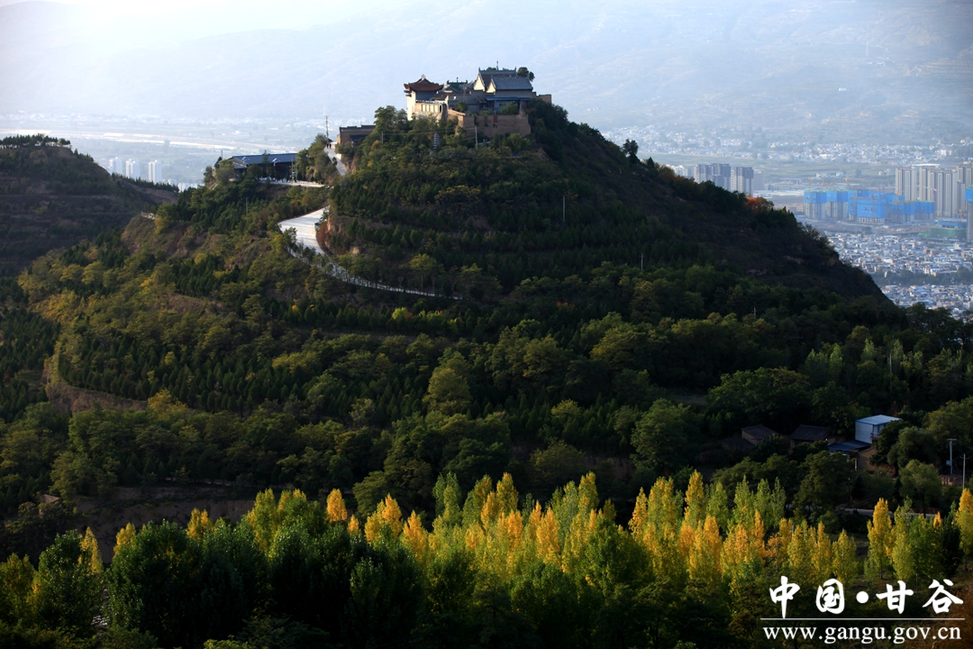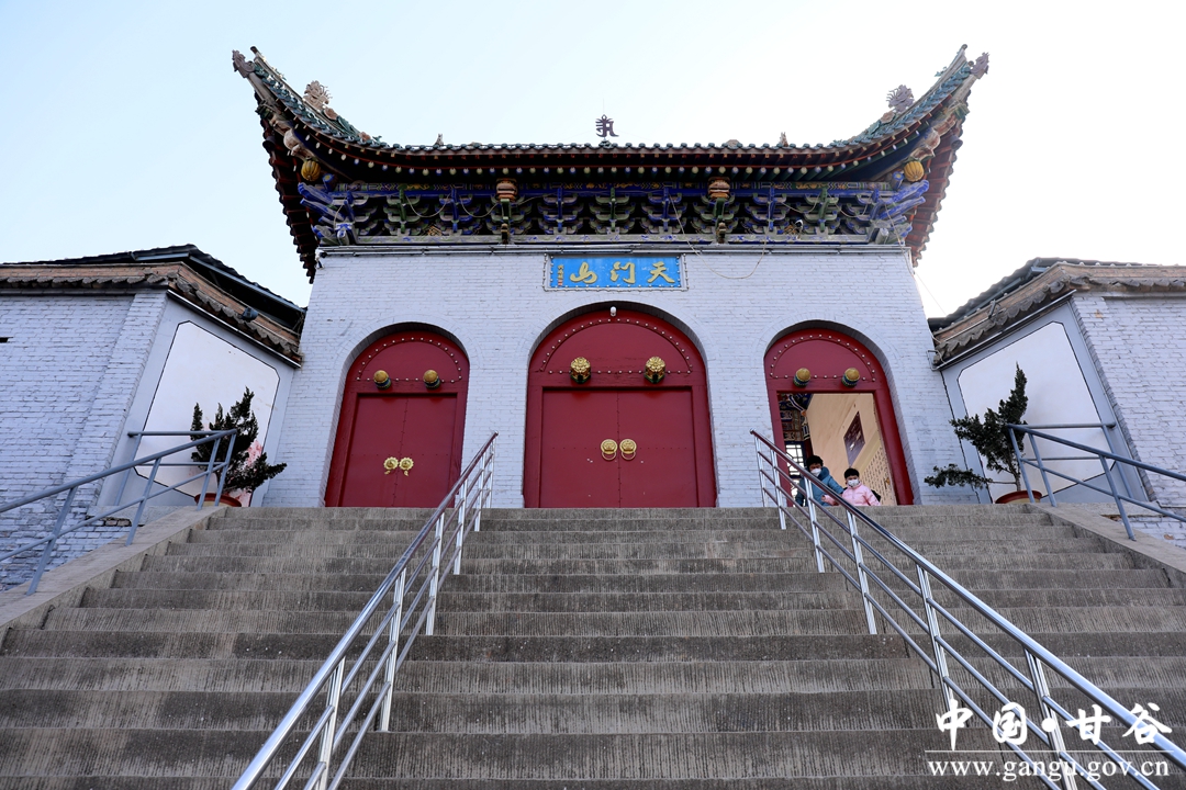 甘谷天门山,屹立于甘谷县城正南一里,因其山由三峰组成,形如笔架,故又称笔架山。其山灵秀,其史绵长,苍翠之间蕴涵一县之文脉。倚天门之屏障,滋冀水之甘泽,冀城兴矣,文化勃焉!