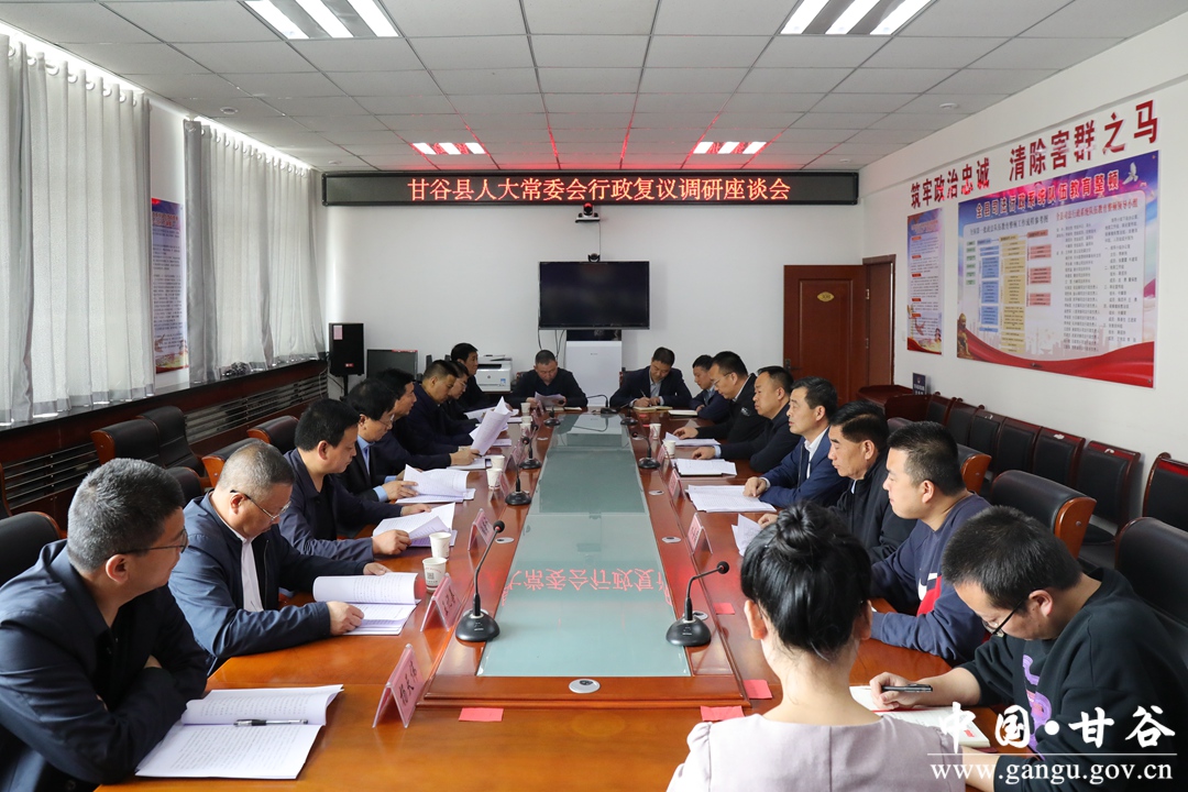 4月18日,县人大常委会主任杨帆带领部分人大代表调研甘谷县行政复议工作。县人大常委会副主任张学斌一同调研。