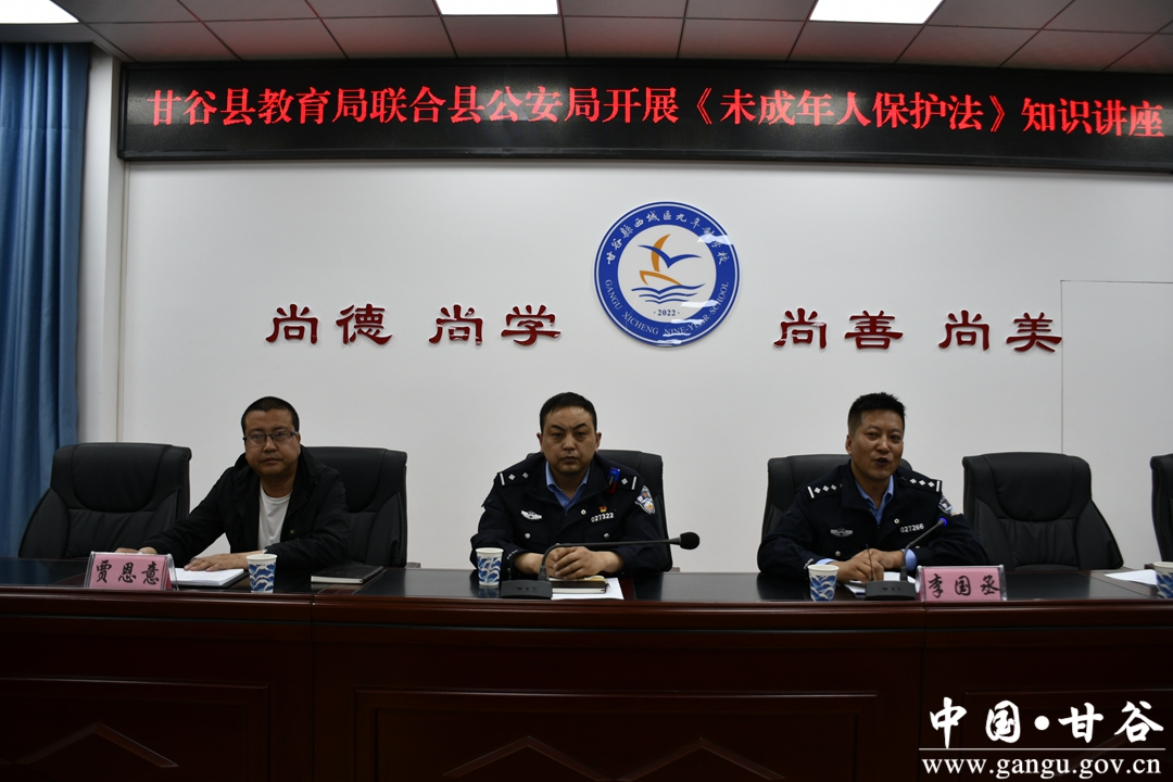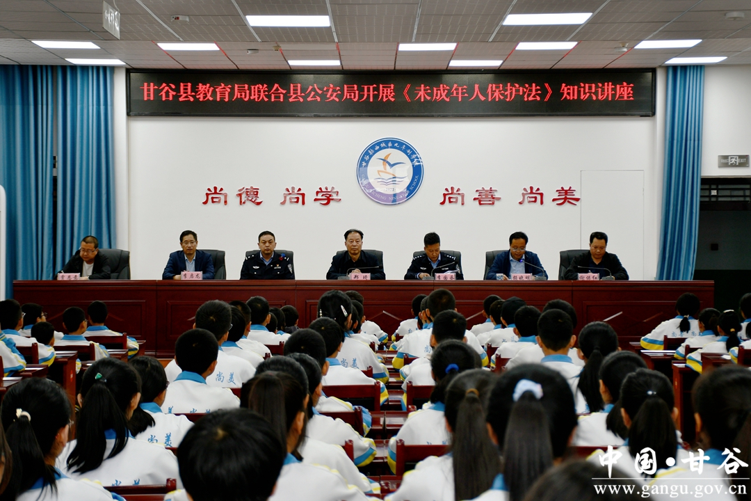 4月18日下午,甘谷县教育局联合西城派出所在西城区九年制学校开展《未成年人保护法》宣讲志愿服务活动,邀请西城区派出所教导员、学校法制副校长李国丞作了《未成年人保护法》知识讲座。县教育局、西城学区相关负责人、西城区九年制学校领导班子成员、七年级全体师生共计200余人参加活动。