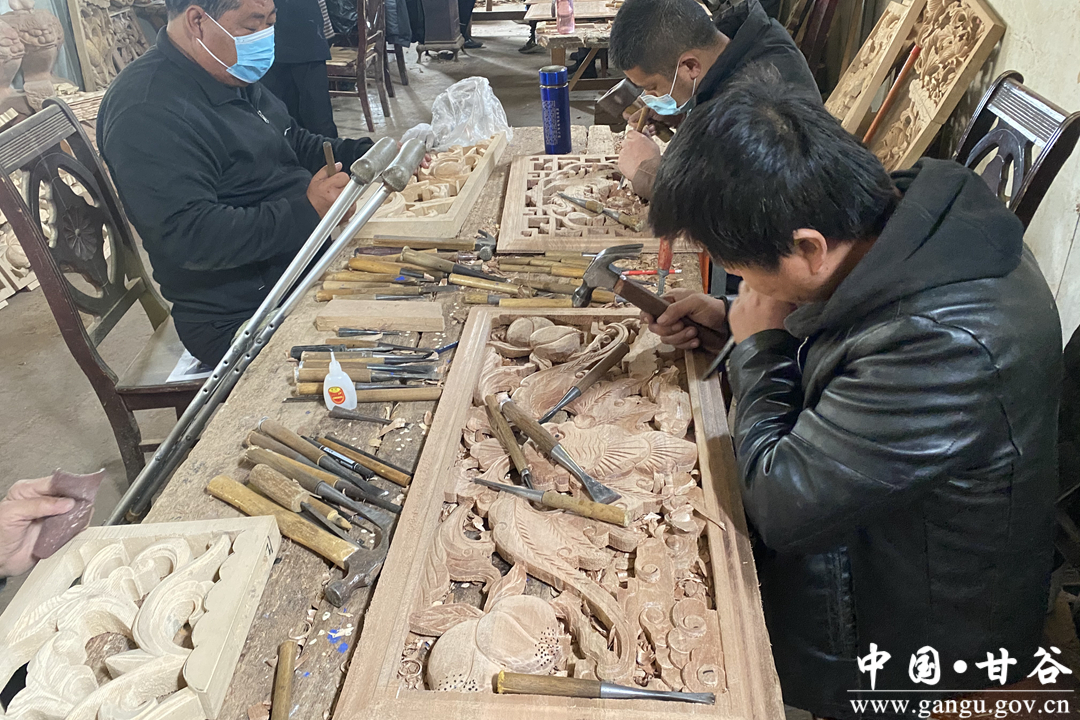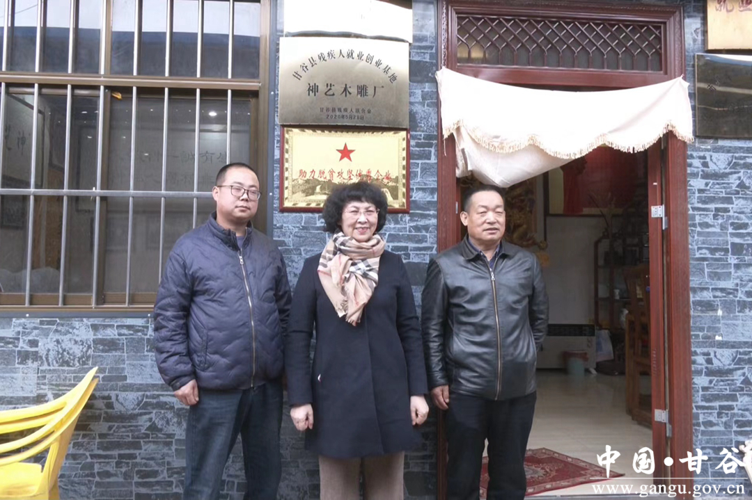 据了解,神艺木雕厂的负责人——甘谷木雕县级非遗传承人宋伟强,也曾在2014年因一场突如其来的车祸导致腿部残疾,一度他都沉浸在生活带来的痛苦中,但当他重新拿起雕花凿,他的心终于安稳了下来。在日复一日,年复一年的苦心钻研下,他的技艺越发高超,神艺木雕厂也在他的带领下越发壮大。由于自身的经历,宋伟强对残疾人就业创业的困难深有体悟,木雕厂稳定下来后,他积极兴办残疾人就业帮扶基地,优先招收周边的残疾人与贫困户工作,他说,希望自己能帮助更多残疾人拥有一技之长,让大家找回生活的自信、生命的尊严。2018年,神艺木雕厂被评为市级残疾人就业基地,宋伟强个人也多次获得全省全国木雕技能大赛奖项。