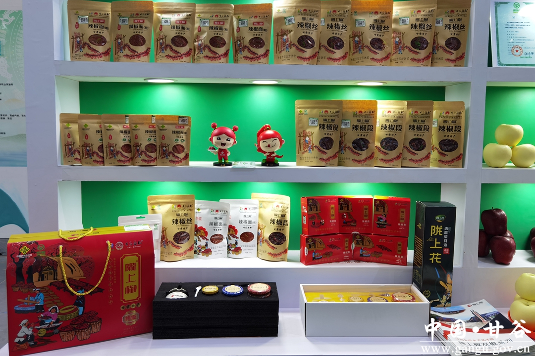 陇上椒辣椒面、辣椒丝、辣椒段等系列产品经中国绿色食品发展中心认定为绿色食品A级产品,博览会上全国各地商家、参观人员纷纷驻足陇上椒展位前品尝,了解陇上椒甘谷辣椒发展情况,对陇上椒“龙头企业+合作社+农户+电商”的发展模式给予高度评价。