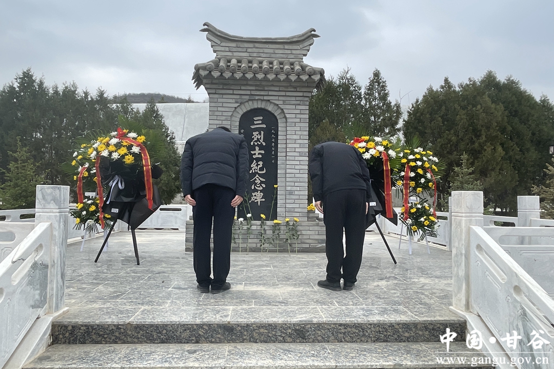 鲜花献英烈,哀思祭忠魂。在庄严肃穆的“三烈士”纪念园中,烈士纪念碑巍然耸立,全体镇村干部列队肃立、默哀,向烈士碑敬献花篮,并依次缓步绕行纪念碑,追忆革命先烈的丰功伟绩,表达对革命先烈的崇高敬意和无限哀思。