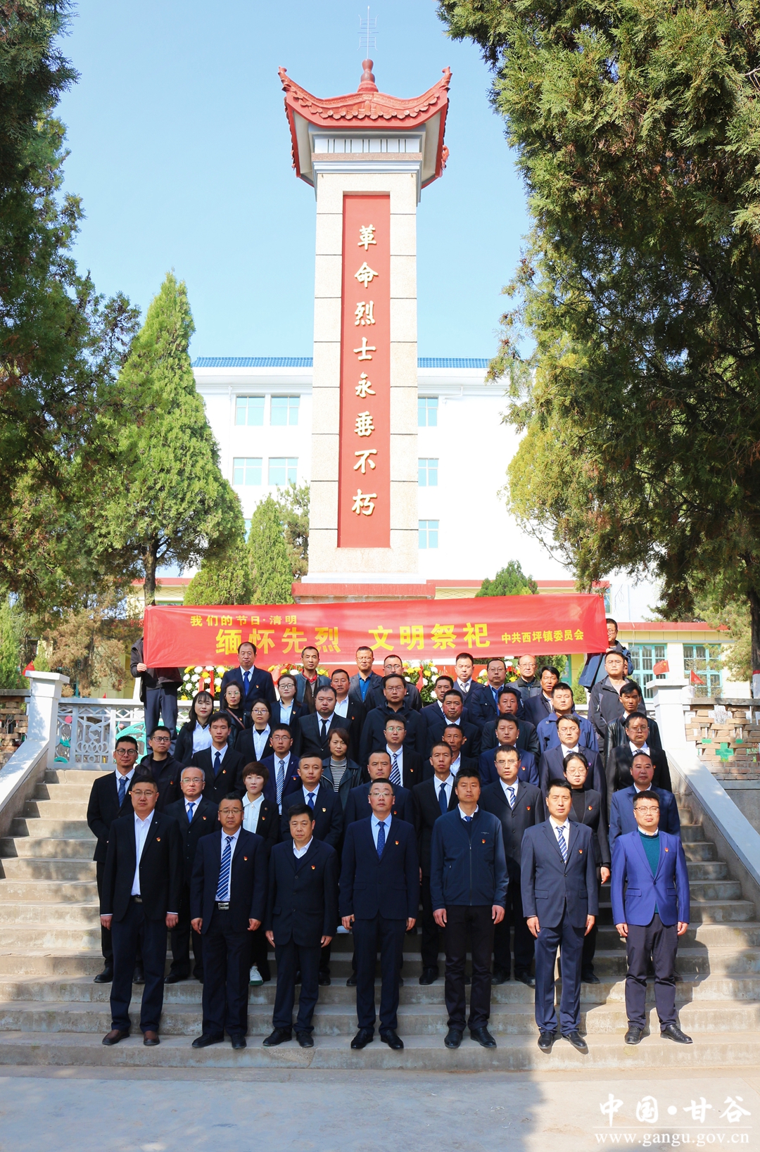 又是一年清明时,无限哀思祭先烈。为悼念革命烈士,缅怀先烈的丰功伟绩,继承和发扬革命烈士的光荣传统,教育引导广大党员干部在新征程中不忘初心、牢记使命,坚定信念、奋勇担当,3月31日,西坪镇组织党员干部前往甘谷县烈士陵园开展以“缅怀革命先烈、传承红色基因、弘扬光荣传统,赓续红色血脉”为主题的缅怀纪念活动。镇全体科级领导、驻村帮扶工作队第一书记、各村党支部书记、机关党员共计70余人参加了活动。