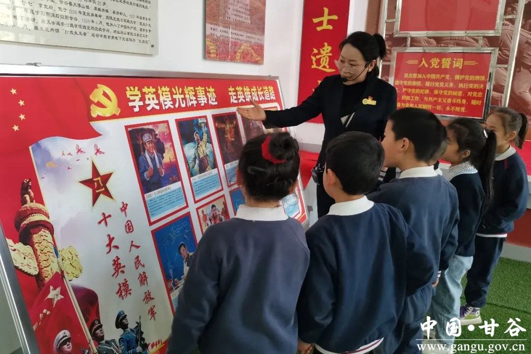 最后,全体人员驱车前往甘谷县烈士陵园开展了“缅怀先烈志·共铸中华魂”烈士陵园祭扫活动。苍松翠柏掩映下的烈士陵园庄严肃穆,在老师的引导下,孩子们排着整齐的队伍,手持鲜花,依次走进烈士陵园,绕碑瞻仰,将手中的鲜花敬献给革命先烈。随后,全体人员参观了革命烈士纪念馆,这里大量翔实的资料和珍贵照片再现了甘谷籍革命烈士的英勇事迹,让孩子们通过了解先辈的奋斗历史,秉承先烈遗志,珍惜来之不易的幸福生活。