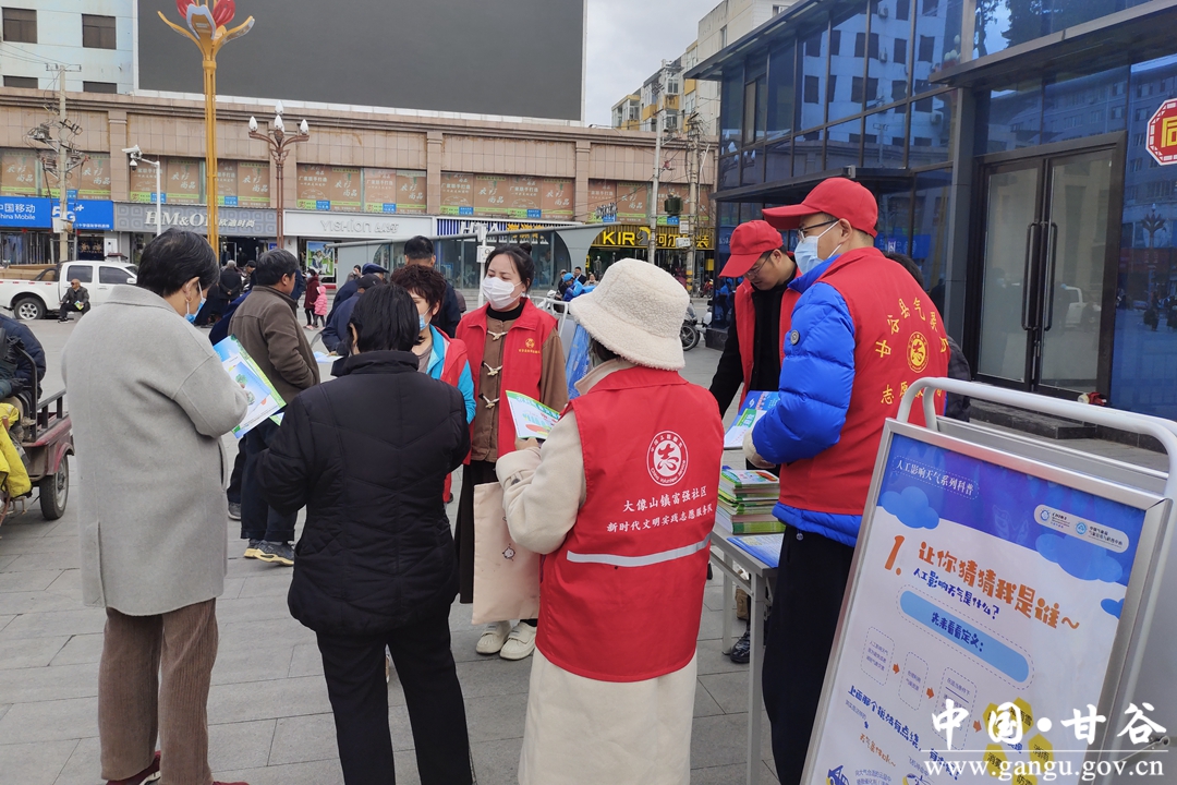 3月23日,时值第六十三个世界气象日,甘谷县气象局联合大像山镇富强社区围绕今年世界气象日主题“天气气候水 代代向未来”,组织干部职工在甘谷县大十字广场开展世界气象日科普宣传活动。
