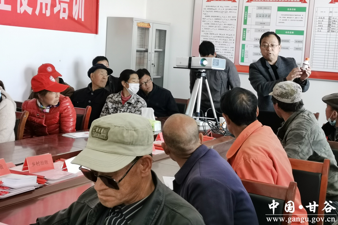 3月15日,甘谷县农技中心技术人员在谢家湾乡地儿湾村开展科学用药暨农药安全使用培训班,谢家湾乡有关负责人及地儿湾村干部群众共计40余人参加培训。
