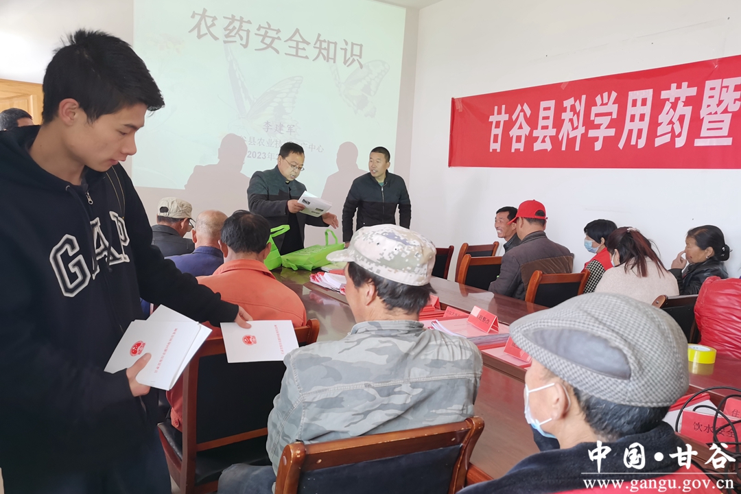 培训中,技术人员围绕农药的管理、使用等有关法律法规、正确选药、安全配药、精准施药与安全防护以及农药包装废弃物回收处理等开展培训,增强群众科学安全用药意识。针对当前农业生产实际,讲解了小麦、油菜病虫害防控技术,提升群众科学安全用药能力。培训前向群众发放了《甘谷县大田作物病虫害防控技术手册》、《小麦病虫害综合防控技术》等宣传技术资料150余份。