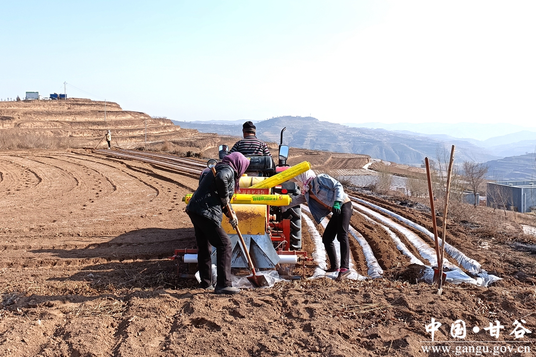 三是创新覆膜机制。积极推行机械与人工相结合的覆膜模式,大力推进农业产业规模化、标准化、机械化,由机械进行连片覆膜,部分小地块由人工铺膜,每天投入大型覆膜机6台、小型覆膜机8台,组织群众、公益性岗位和镇村干部志愿者投工投劳1500余人次,全镇春耕生产工作有力有效推进,截至目前,已在中岔流域实施顶凌覆膜8000余亩。