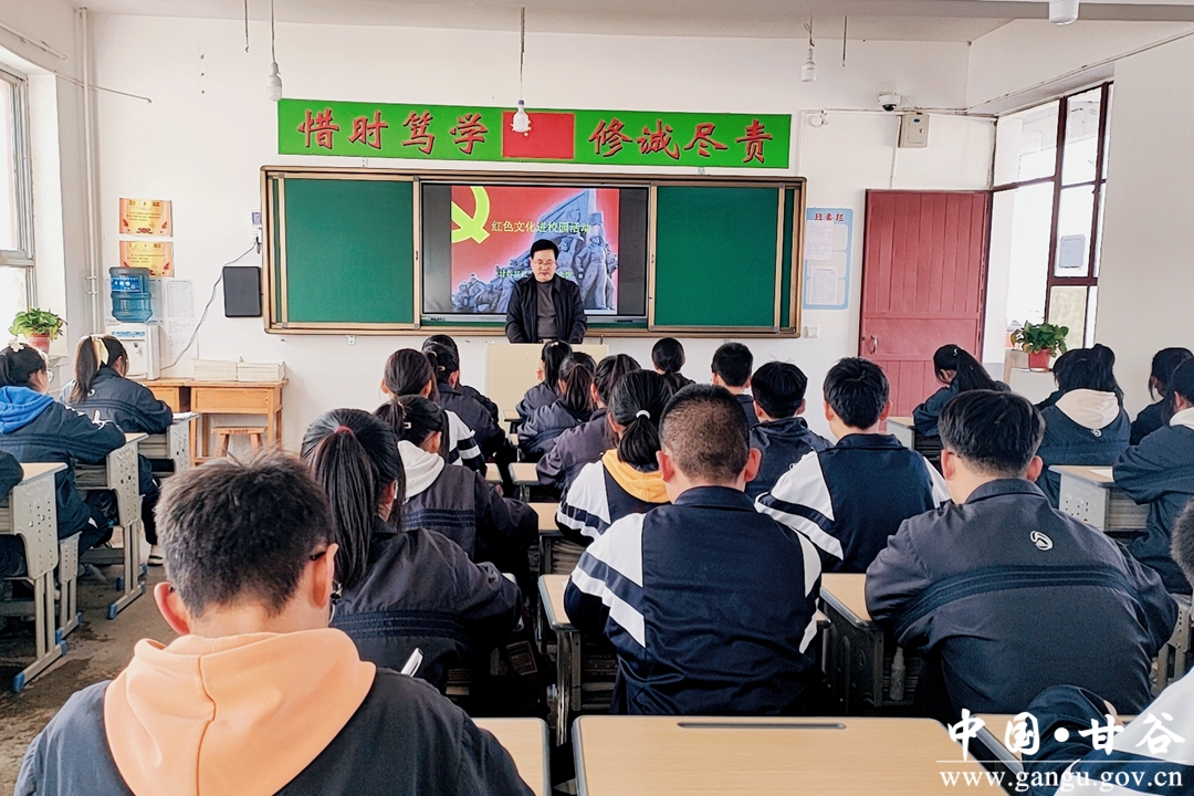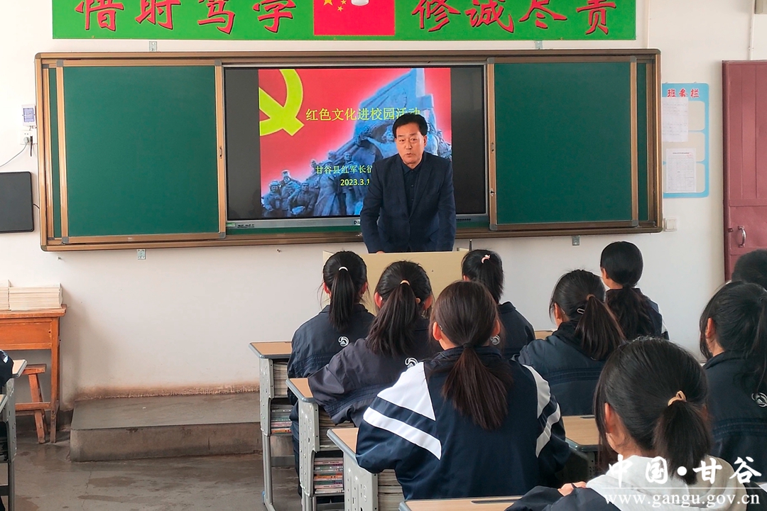 为坚决贯彻落实省、市、县委关于开展“三抓三促”行动部署要求,3月14日下午,甘谷县红军长征纪念馆以习近平新时代中国特色社会主义思想为指导,结合学习宣传贯彻党的二十大精神和习近平总书记对甘肃重要讲话指示批示精神,在甘谷县育才中学开展红色文化进校园活动。旨在丰富学生们的校园生活,让学生们从红军的故事中汲取积极向上的精神食粮,让学生们学习红色文化,坚定红色信念,传承红色基因。