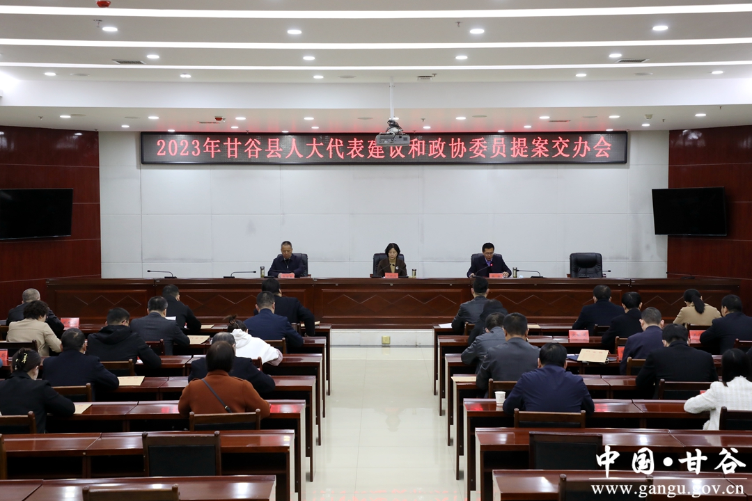 3月15日,甘谷县召开2023年人大代表建议和政协委员提案交办会。县人大常委会副主任杨晓涛、县政协副主席郭有生出席会议并讲话;副县长、县公安局局长张涛主持会议;县政府办通报2022年“两案”办理有关情况和2023年“两案”任务分解交办情况;县直相关部门、单位和乡镇等各承办单位分管领导参加会议。