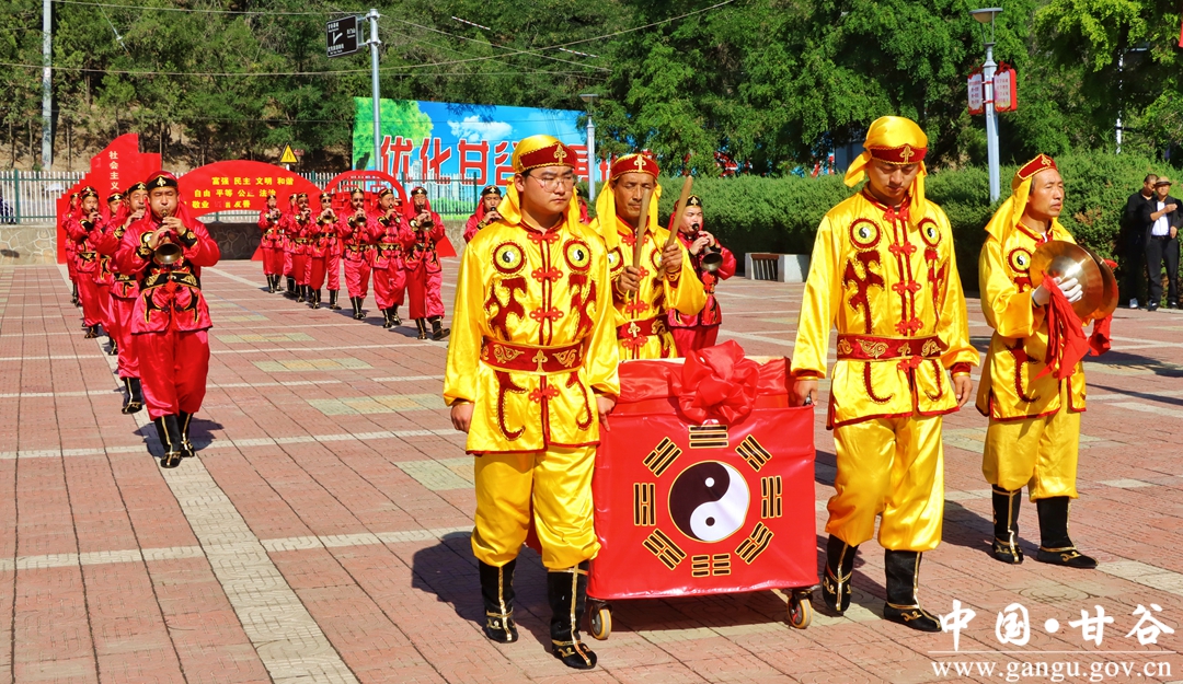 据了解,甘谷唢呐队是1990年为参加首届公祭伏羲大典而成立的,迄今为止已参加了30届公祭伏羲大典活动。经过30余年的发展演化,演员服装、表演形式、演奏技巧、表演队伍、展演内容得到了不断丰富和完善。