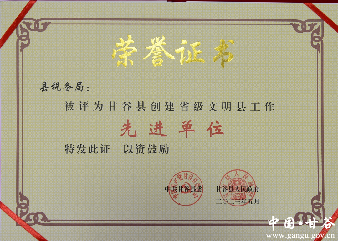 近日,甘谷县召开精神文明建设工作推进大会暨争创全国县级文明城市提名城市动员大会,回顾总结全县精神文明建设工作成效,表彰了创建省级文明县工作的先进集体和先进工作者。甘谷县税务局被表彰为创建省级文明县工作“先进单位”、甘谷县税务局一名同志被评为“先进工作者”。两项荣誉的取得,既是对全局精神文明建设工作成绩的肯定和认可,更是对甘谷县税务局全体党员干部的鼓励和鞭策。