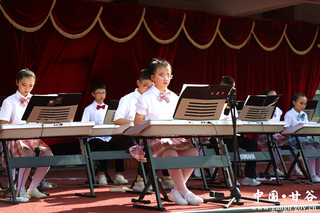 在文艺汇演中,开场节目《外婆的澎湖湾》《喜洋洋》,让人领略到了扬琴的声色之美,优美的旋律让观众陶醉,热烈的掌声不断。《阳光下的花朵》《礼赞新时代》《礼仪之邦》《华夏鼓娃》《竹林赛马》《少年中国说》等节目依次精彩上演,同学们精彩的表演声情并茂、刚柔并济,或欢快活泼,或大气磅礴的表演,感染了现场每一位观众。器乐合奏《金蛇狂舞》更是将文艺汇演活动推向了高潮。