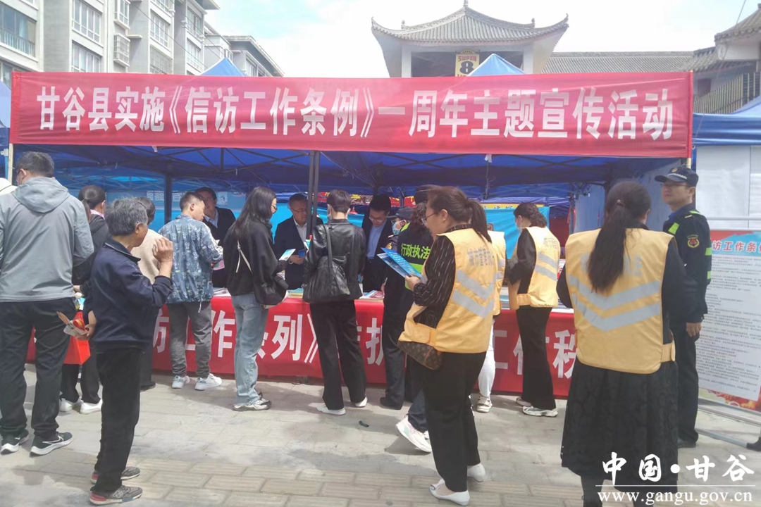 4-5月,甘谷县信访局结合《条例》宣传月活动,联合相关部门、乡镇、社区,深入建筑工地、村组、集会、节会现场,以悬挂宣传条幅、发放宣传材料、设置宣传展板、设立咨询点等方式,集中开展《条例》实施一周年主题宣传活动8场次。宣传活动中,共动用宣传车2台,设置宣传拱门1座、大型展板16块,悬挂横幅16条,散发《条例》、涉法涉诉信访改革、依法逐级走访、网上信访等宣传资料60000余份,接待群众现场咨询630余人,受教育群众5万多人。