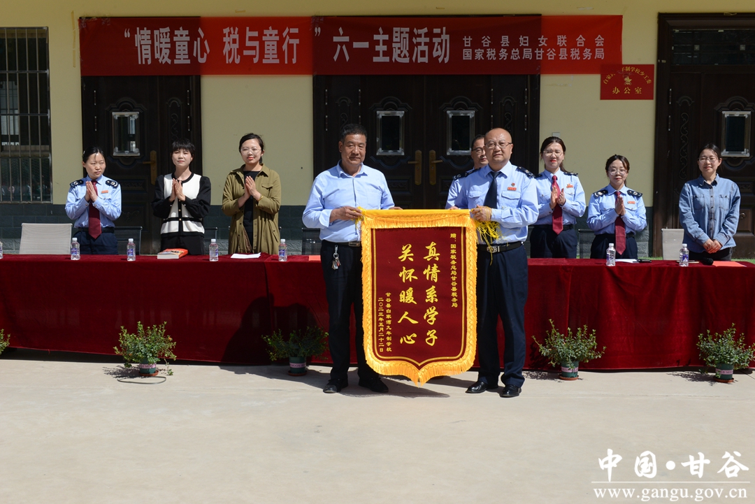 爱心捐赠,手有余香。县局党委委员、副局长苏万军代表县局党委和全体干部对白家湾九年制学校的孩子们致以节日的问候和祝愿,并向辛勤耕耘、呕心沥血的老师们表达崇高的敬意。他鼓励学生们从小树立远大理想,乐学力行,自强不息,不辜负祖国的期望,不辜负老师和父母的重托,用知识改变命运,努力成长为对国家、对社会有用的人。捐赠仪式后,董校长为甘谷县税务局赠送锦旗,并鼓励全体学生将爱心化作学习动力,以优异成绩回报社会。
