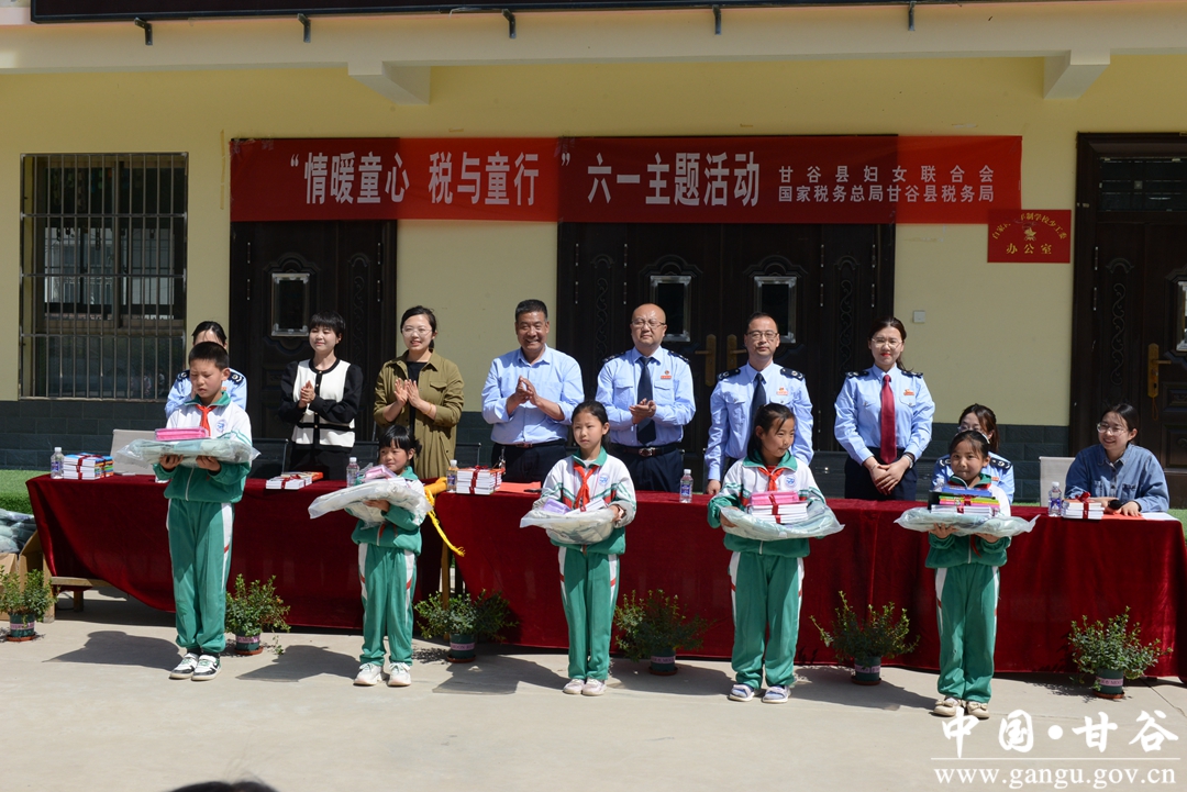 儿童是国家的未来,是民族的希望。5月22日,在第73个“六一”国际儿童节来临之际,甘谷县税务局联合县妇联在白家湾九年制学校开展“情暖童心,税与童行”六一儿童节主题关爱活动,为孩子们送上节日礼物和祝福,用实际行动传递真情,传递爱心。