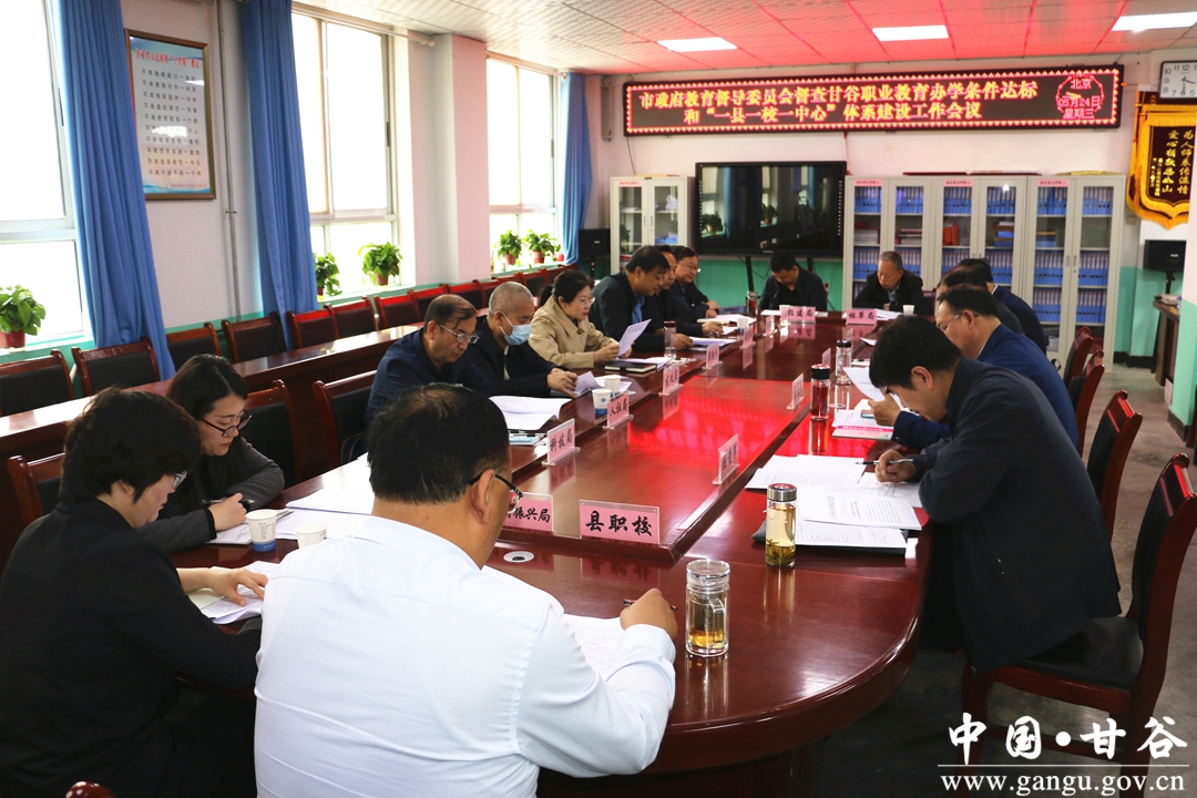 在督查汇报会上,县政府教育督导室专职督学程芳军汇报了甘谷县职业学校办学条件达标和“一县一校一中心”体系建设工作情况。督查组专家就甘谷县教育局等五部门印发的《甘谷县职业学校办学条件达标工作实施方案》、办学条件达标时间节点、校园面积、图书数量、县区通用培训平台建设情况和县职教中心培训承担及开展情况向与会各部门相关领导问询。