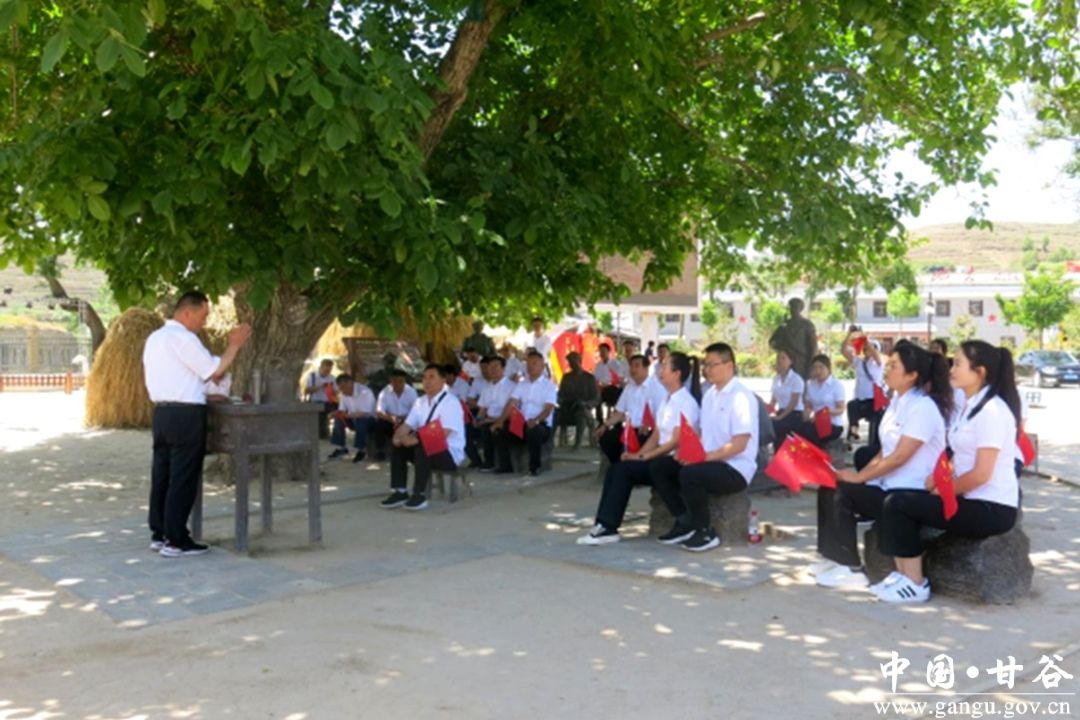 艳阳高照,清风徐徐,结束参观活动的甘谷公司党员干部们并没有马上离开,大家聚集在榜罗镇小学南侧打麦场的核桃树下,进行了一场别开生面的“讲党课”教育活动。此次党课由该公司党总支书记讲授,从1935年9月中共中央陕甘支队进入通渭开始,融合参观期间的所思所感,在表达对革命先烈为国为民勇往直前、无私奉献崇高敬意的同时,再次引导在座党员干部要深入学习贯彻习近平新时代中国特色社会主义思想,不忘初心、牢记使命,做好新时代新时期国家富强、民族振兴的举旗手、带头人,立足企业发展积极履行党员义务,结合岗位特性坚定不移做好电力供应和民生保障相关工作。