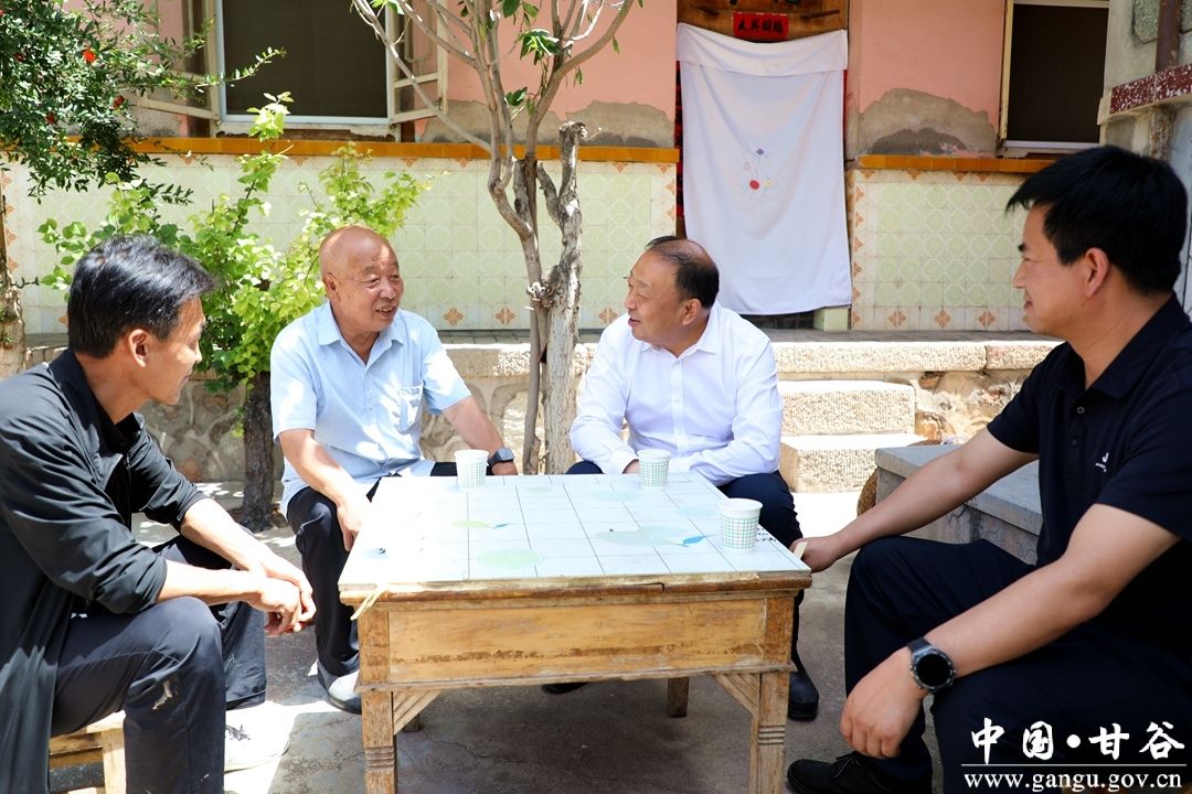 今年82岁的李梨花老人是1960年入党的老党员,看到老人身体硬朗、精神矍铄,吴健十分欣慰,祝她健康长寿。今年47年党龄的老党员刘绪祖时刻牢记自己的初心和使命,在村级各项事务中积极发挥着老党员先锋模范作用。每到一处,吴健亲切与老同志拉家常,关切询问身体状况、日常生活、医疗保障等情况。他说,老党员、老同志为甘谷经济社会发展作出了突出贡献,任何时候都不能忘记。希望老党员、老同志珍惜光荣历史、永葆政治本色,充分发挥自身优势,带头讲好党的故事、甘谷的故事,让党的光荣传统和优良作风代代相传,鼓舞和激励年轻一代为甘谷的事业接力奋斗、再建新功。全县各级各部门要用心用情关心关爱老党员、老同志,切实为他们办实事、解难题,让他们幸福生活、安度晚年,共同分享甘谷现代化建设的新成就。