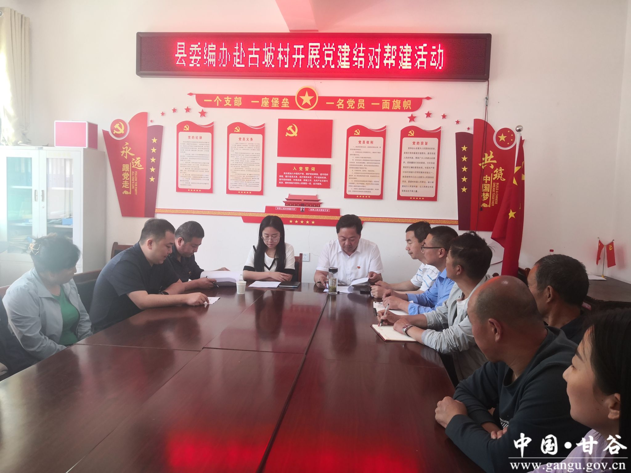 在党的生日来临之际,甘谷县委编办党支部以7月份“主题党日”活动为契机,党支部拓展活动方式和活动内容,组织全体党员干部到古坡镇古坡村,与古坡村党支部农民党员一道,以共同开展一次理论学习、共同上一堂党课、共同开展一次交流研讨、共同重温一次入党誓词的“四个一”方式,开展了一次丰富多彩“主题党日”和党建结对帮建活动。
