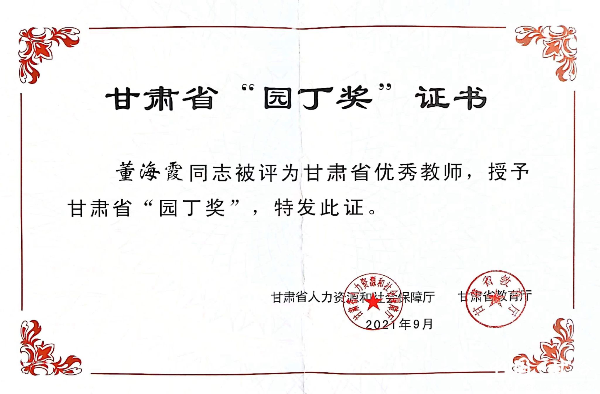 开园至今,先后有2名教师晋升高级职称,1名教师被评为省级优秀教师,1名教师被评为省级骨干教师,1名教师被评为省农村骨干教师,1名教师被评为天水市学科带头人,2名教师被评为天水市骨干教师,2名教师被评为县骨干教师,1名教师被评为县优秀班主任,6名教师在市县优质课竞赛中获奖;1人当选县人大代表,1人当选县妇代会代表,1人当选县知联会理事,1人当选县政协委员。她本人两次应邀担任县幼儿园优质课竞赛评委,主持的省市级课题研究取得了可喜成绩,主编的学生作文辅导图书由重庆出版社出版发行,先后在《甘肃教育》《甘肃高师学报》《天津教育》等报刊发表论文多篇。2017年9月,幼儿园被甘谷县委县政府评为先进学校;2019年12月,幼儿园被天水市教育局评为天水市标准化幼儿园;2020年11月幼儿园被评为甘谷县语言文字示范校,12月幼儿园入选全国足球特色幼儿园;2022年11月,她主持的《农村幼儿园转岗教师园本培训模式研究》荣获天水市2021年基础教育教学成果奖。