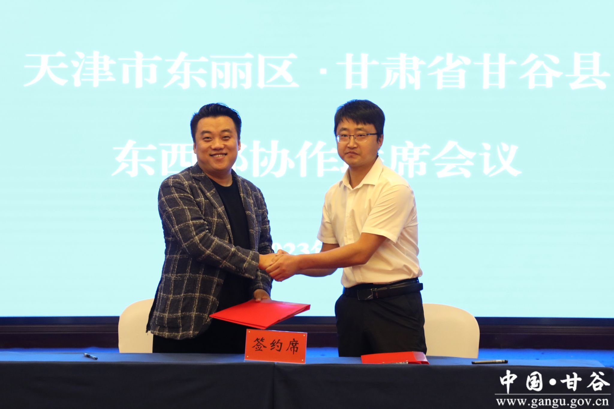 会上,东丽区农业农村委书记、主任张乃军代表东丽区向甘谷县捐赠财政帮扶资金;东丽区委统战部常务副部长、侨办主任张建东代表东丽区向甘谷县人民医院捐赠医疗检测设备和运营资金;东丽区委统战部副部长、工商联党组书记官成路代表东丽区向甘谷县捐赠留守老人帮扶资金;东丽区工商联副主席王旭军代表东丽区向甘谷县捐赠贫困大学生帮扶资金。天津宏农科技发展有限公司总经理席晨峰与安远镇大城村党支部书记丁小东签订村企结对帮扶协议;天津宏农科技发展有限公司总经理席晨峰与古坡镇大卜峪村党支部书记牛鹏举签订村企结对帮扶协议;纳洋(天津)科技发展有限公司总经理刘天军与磐安镇四十铺村党支部书记王鹏举签订村企结对帮扶协议。