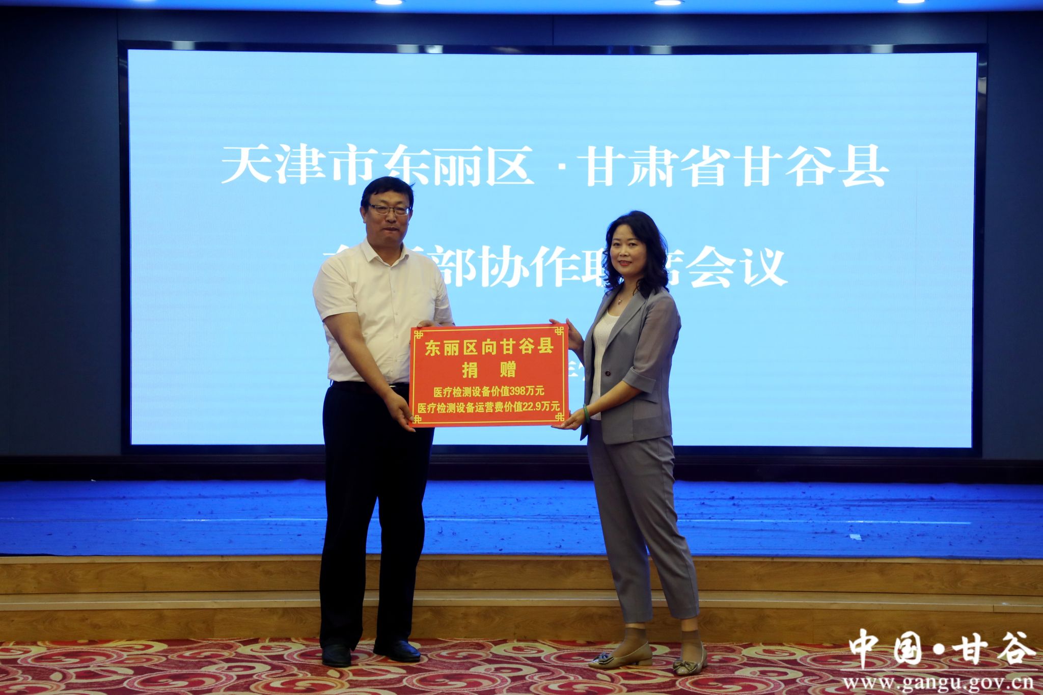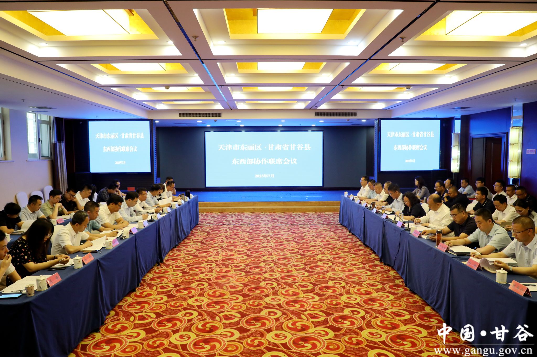 7月8日,天津市东丽区·甘肃省甘谷县东西部协作联席会议召开。东丽区委副书记、区长李春出席会议并讲话;区委常委、统战部部长刘辉及有关部门负责人和企业家代表出席会议。市委常委、副市长张宇晶出席会议。县委书记吴健主持会议。县委副书记、县长孙忠平介绍全县经济社会发展和东西部协作工作情况。县委副书记林如海,县委常委、统战部部长王见学,县委常委、副县长张秉春,副县长金辉,以及相关部门和乡镇主要负责人参加会议。