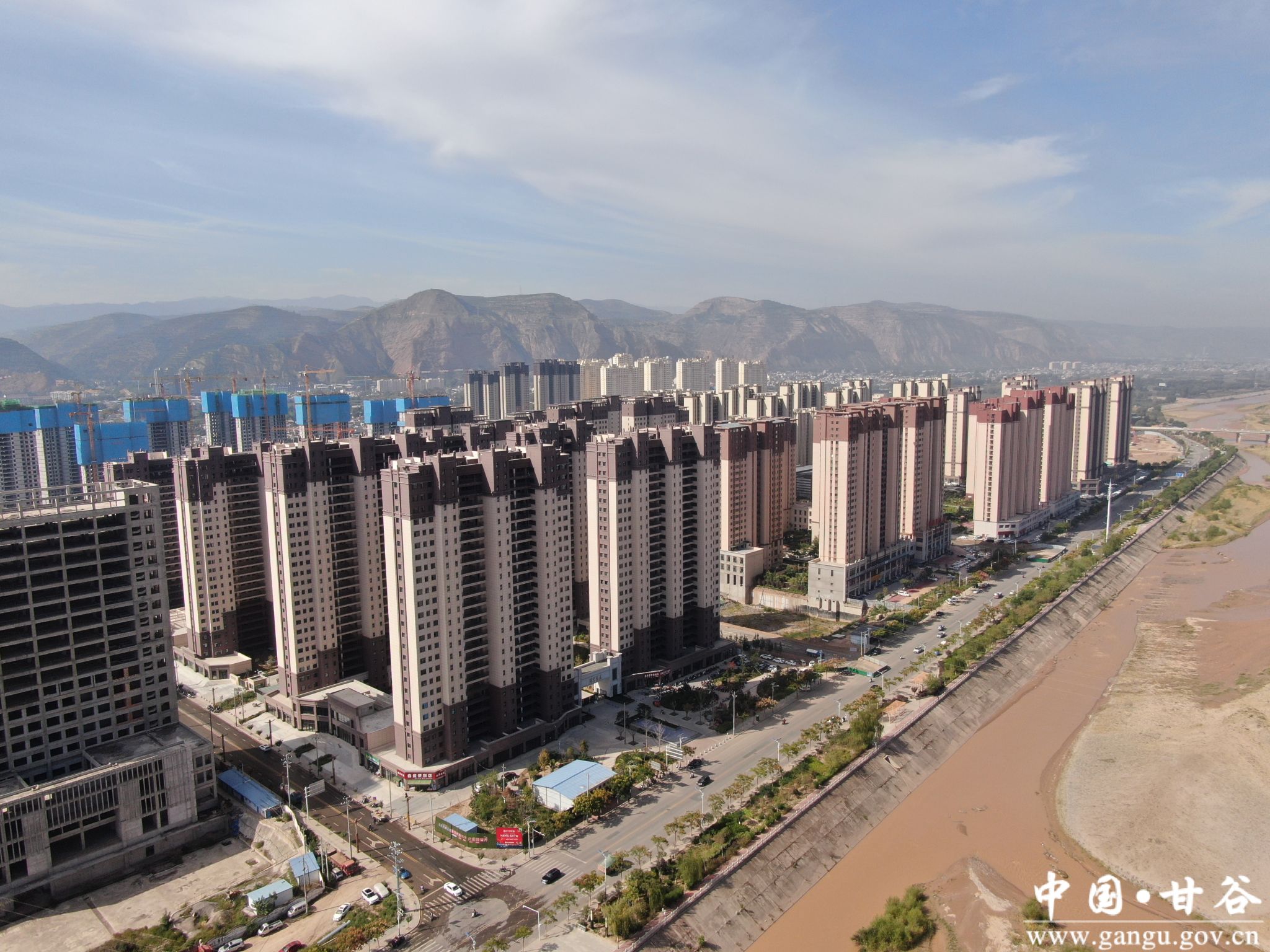 朱圉山与六盘山握手时,渭河就伶伶俐俐地穿过其中,冲击出一条长约42公里的平旷川区。于是,甘谷县一川两山的基本格局就形成了。渭水荡漾时,两岸风光无限,气象万千,波光粼粼里,伏羲捕过鱼的河流还在,秦人吟诵过的蒹葭还在,然而,渭水河畔却早已换了人间,大桥栉比,高楼林立,花木扶疏,风景如画。古朴的甘谷县城也延展生发开来,呈现出一幅一河两岸的繁荣图景。