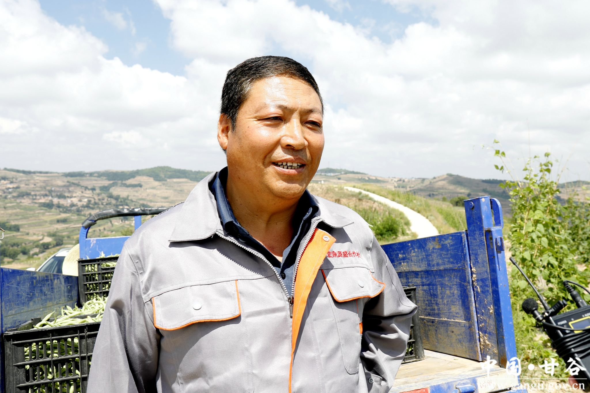 甘谷县大庄镇宏鼎源盛合作社负责人席连平介绍说, 咱们的架豆王有500亩,一亩能产四五千斤,现在刚开始一天能摘2000斤左右,基本都卖到咱们甘谷县的菜市场了,现下的价格是一斤两块钱。