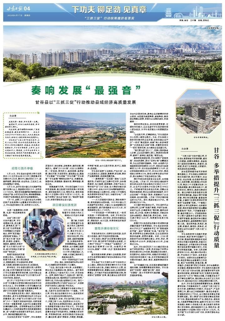 甘谷县还坚持“工业强县、产业兴县”,全力以赴强龙头、延链条、聚集群、树品牌,推动产业提质增效,促进高质量发展。